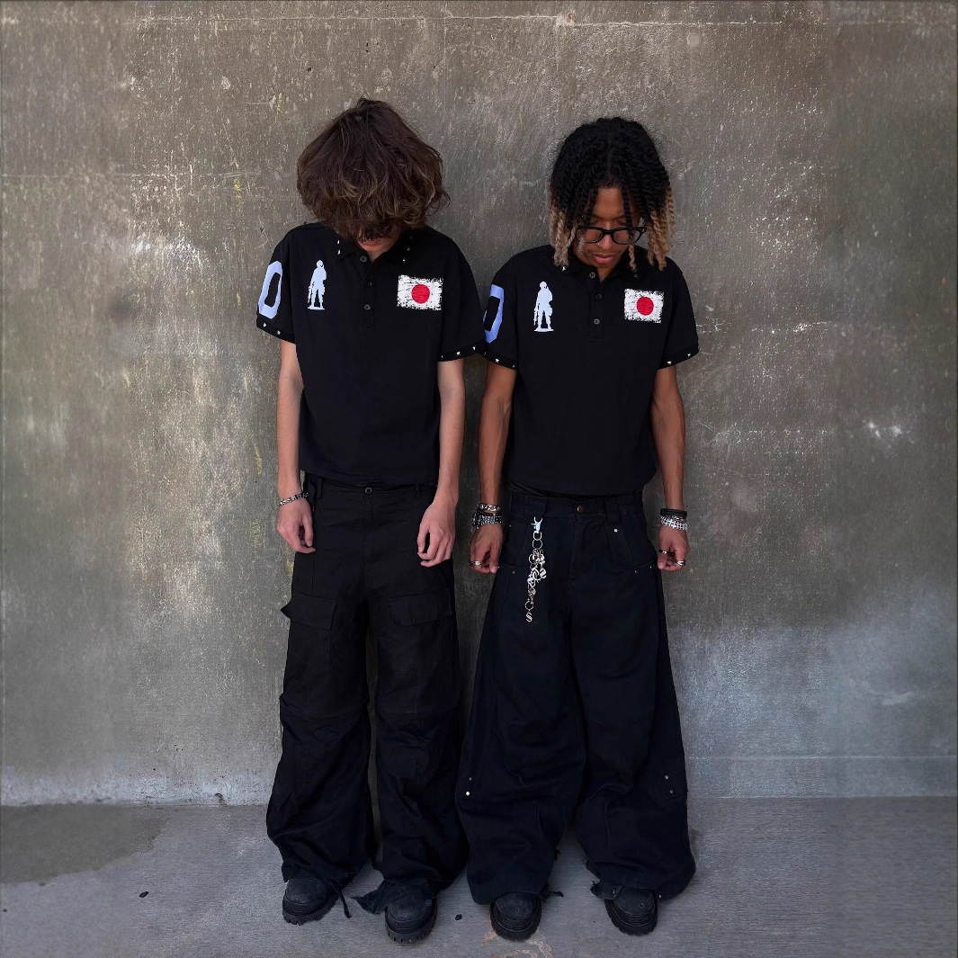 Y2k半袖ポロシャツtシャツプリント柄トップスダークブラックゴシックヴィンテージ夏ストリートウェアトップス