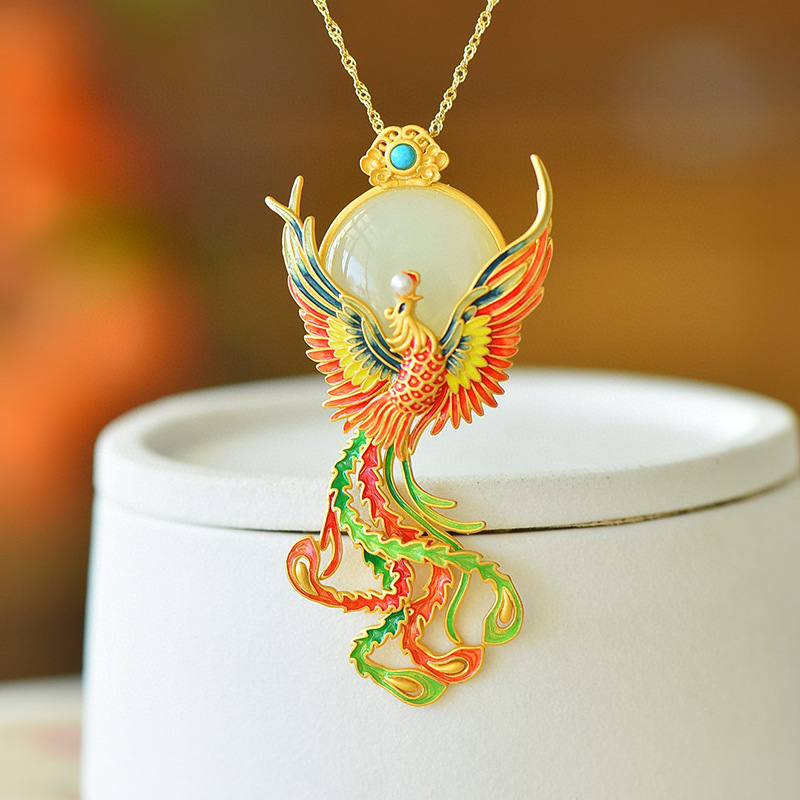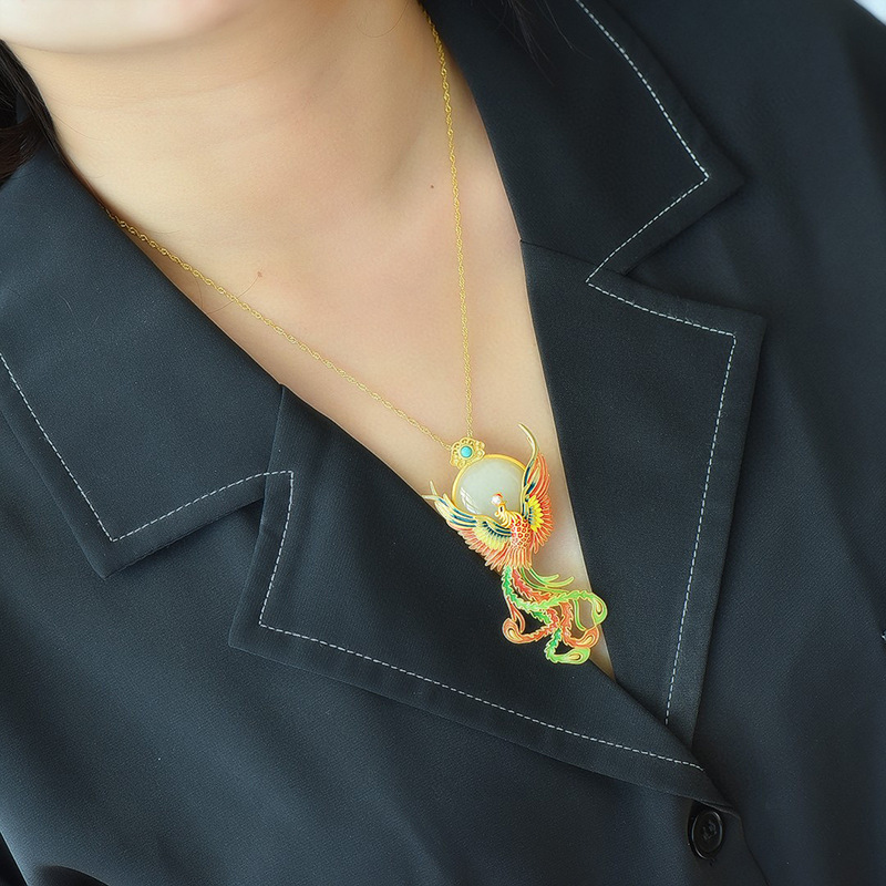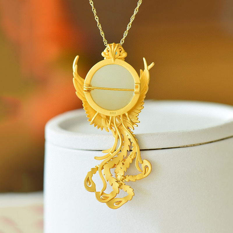 天然模造和田玉有鳳来儀ブローチ焼青滴ゴム龍鳳ブローチペンダント両用モデル