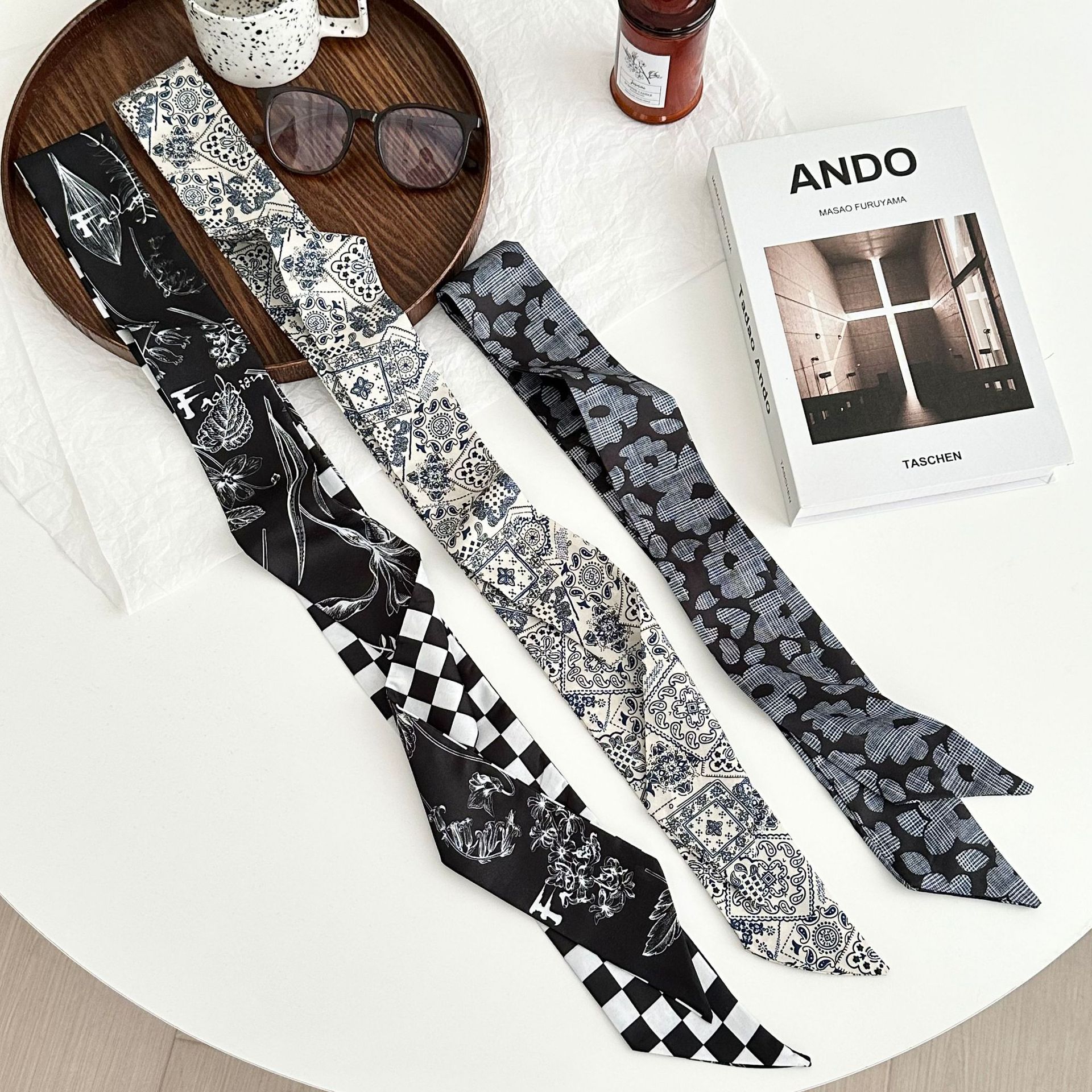 シルクスカーフ、ロング、高級、春夏新作、ヘアタイ、ヘアタイ、装飾リボン、多機能おしゃれヘアタイ