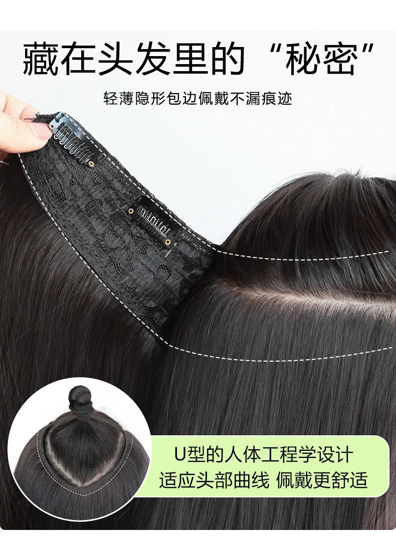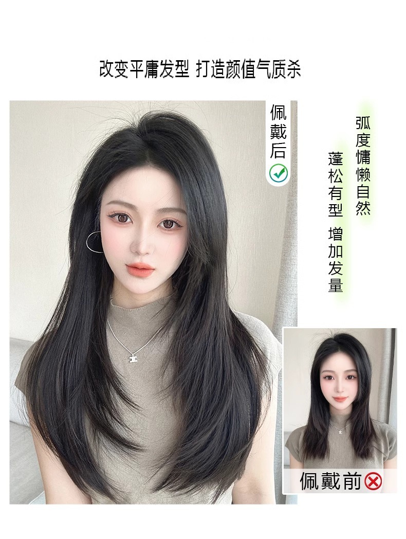 かつらの女性の三枚式の頭の上に跡がないです。