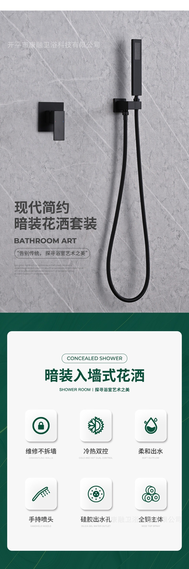 ドイツ製隠蔽式シャワーガン グレー 埋め込み式壁掛け浴室用 全銅製熱溶融家庭用シャワーセット 銅製