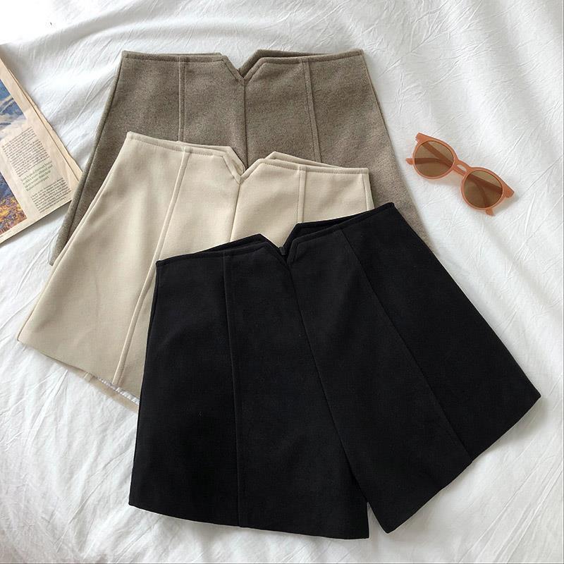 2025年秋冬新款加厚毛呢时尚韩版百搭开叉阔腿短裤女休闲外穿靴裤