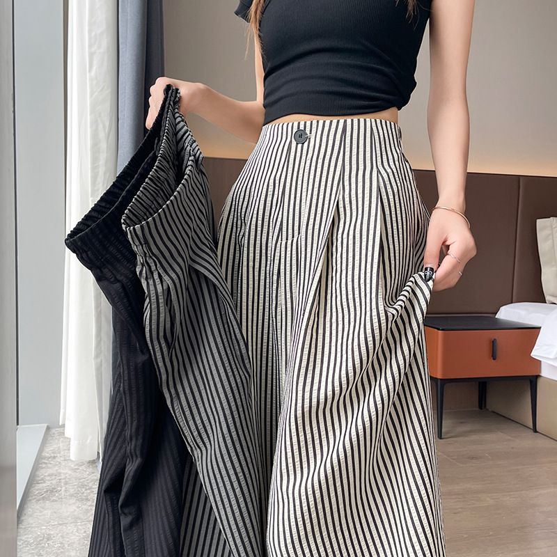 韩版条纹阔腿裤女秋冬2025新款高腰显瘦宽松垂坠感直筒拖地西装裤