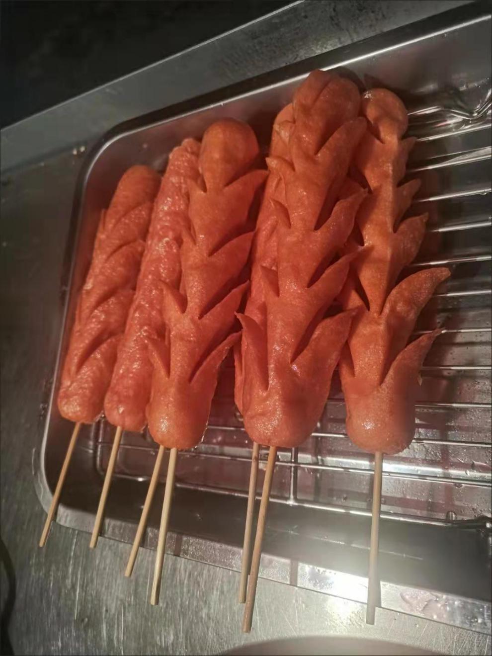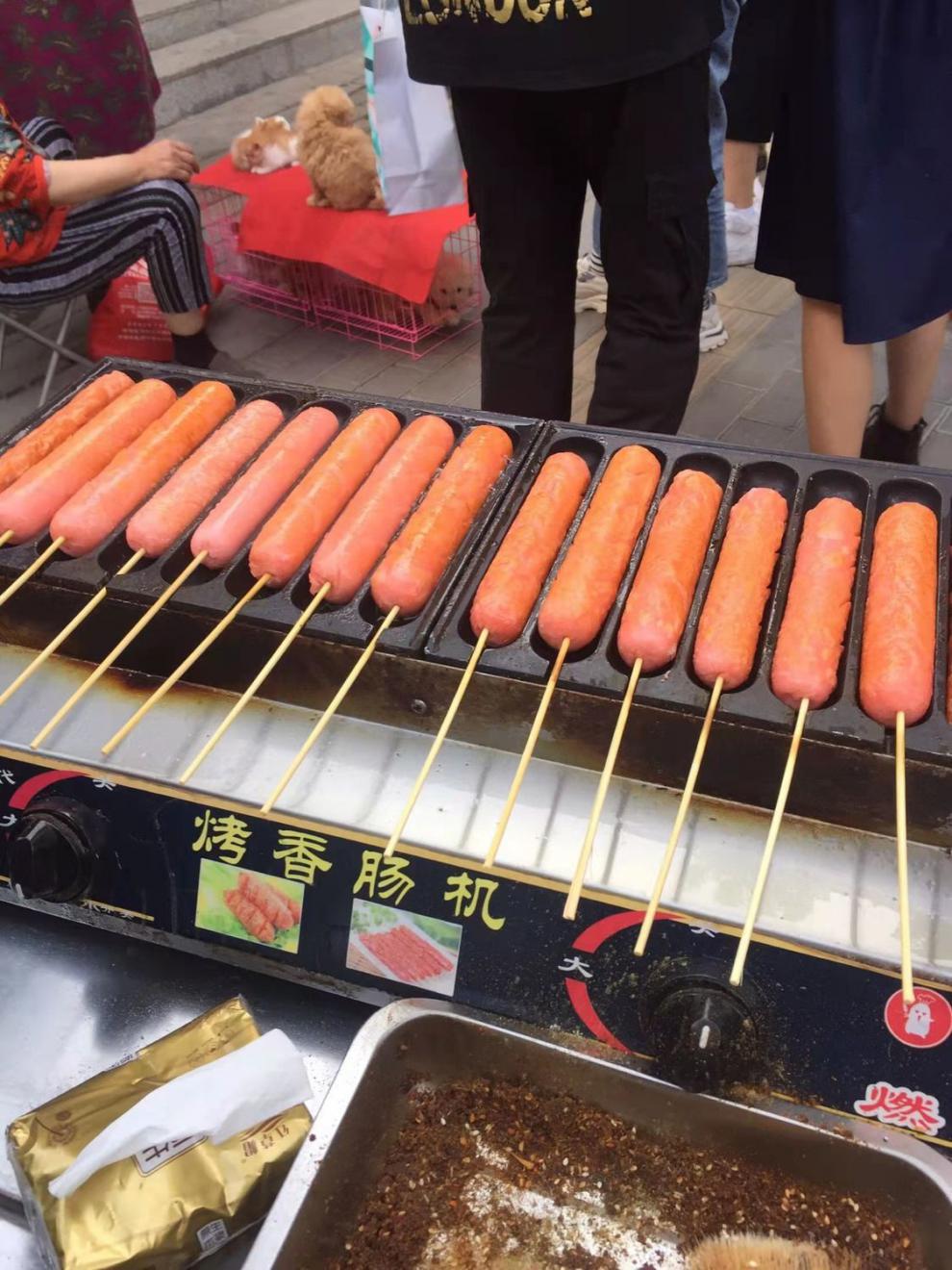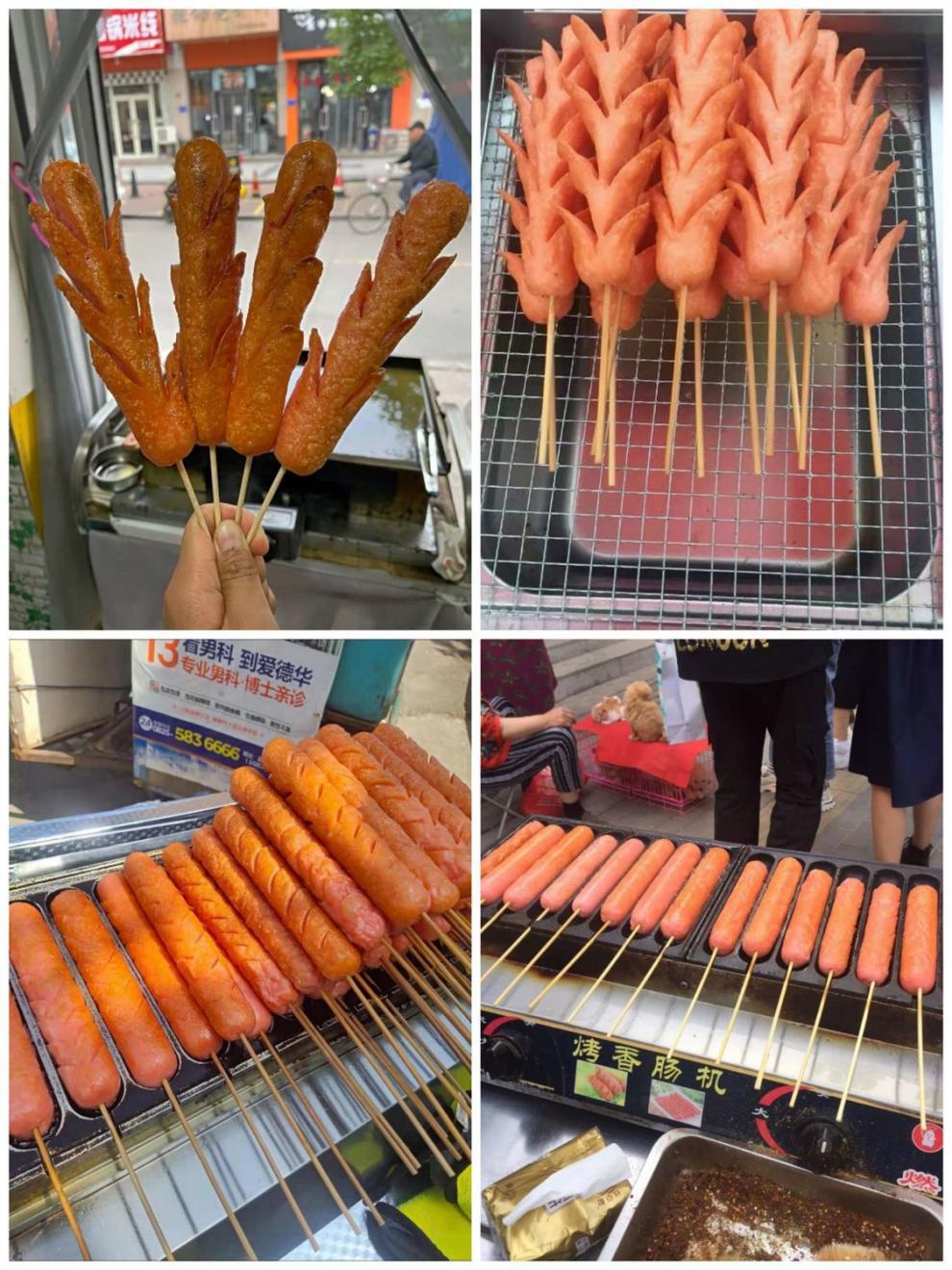 夫宇のデンプンの焼き腸の街頭のハムと腸の揚げ焼きの道端の屋台の脆い皮の商用ソーセージの屋台の箱の卸売り