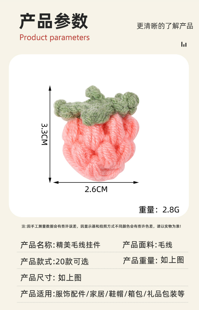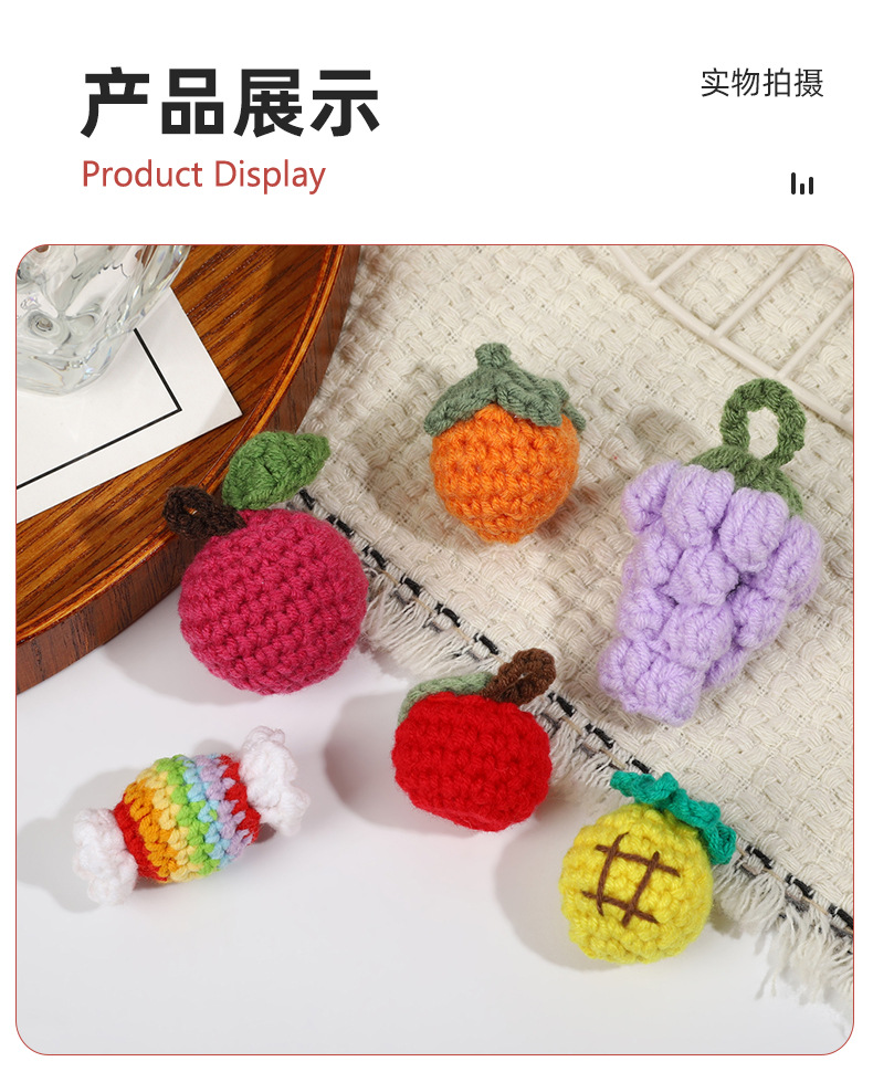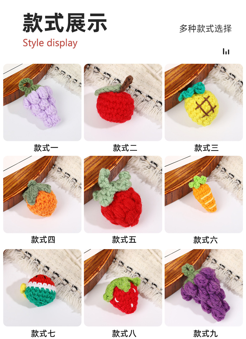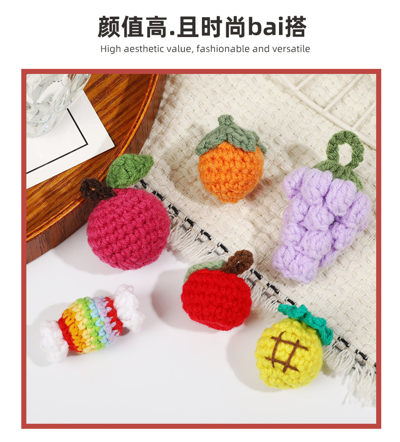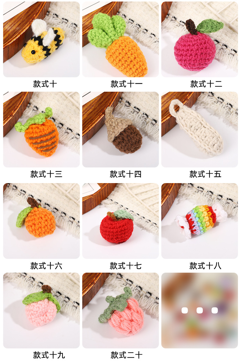 手工毛线钩织可爱果蔬钥匙扣发夹材料发绳小装饰DIY服饰配件饰品