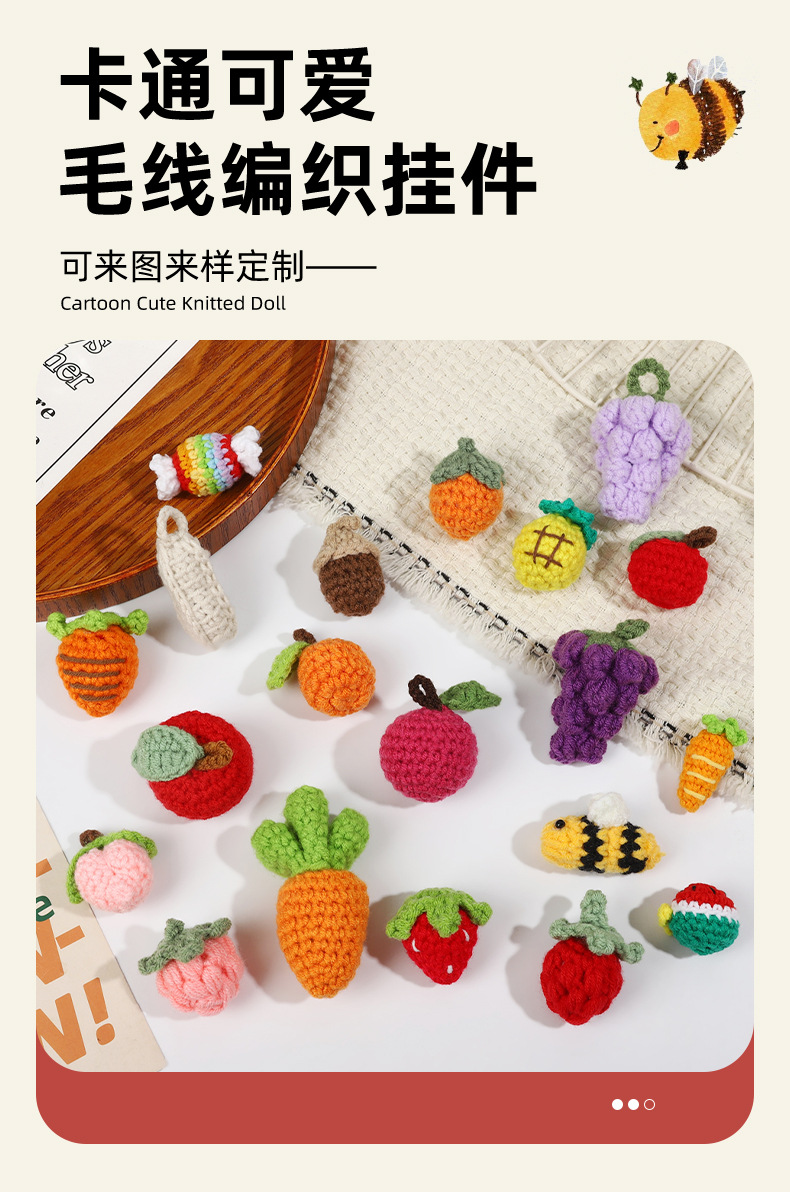 創意果物蜂小アクセサリー手作り毛糸漫画ニンジン手作りストラップ編み完成品diyストラップ