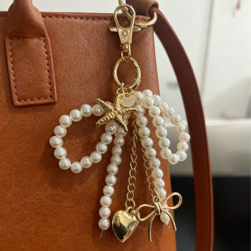 韓国系chicの新型の甘い真珠の蝶結びの銀の愛のペンダントの車のキーホルダーのairpodsのペンダントの手