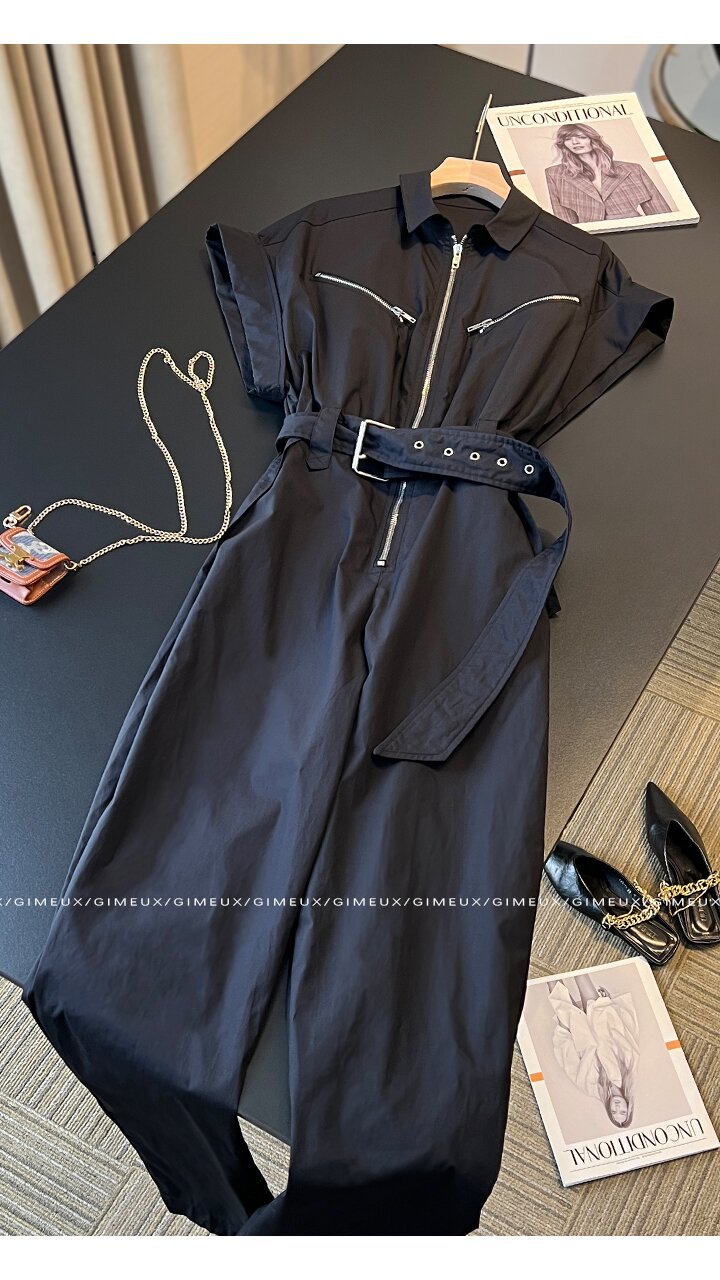 黒は痩せている新製品のスーツのワンピースの女性の夏の2024レジャー風は腰のズボンを収めます。