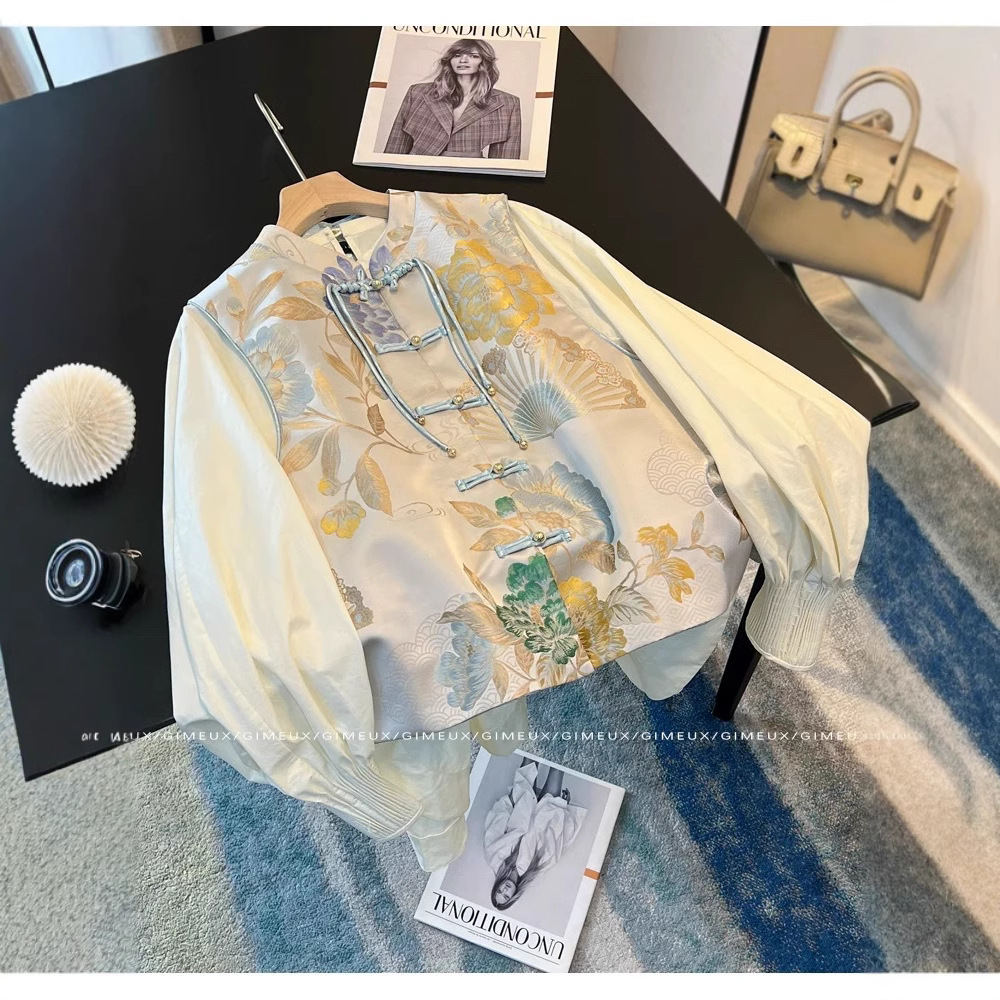 春の高級感の国風の上着2025女性のタイプの超美しい重工業の刺繍の馬の甲の中はゆったりしているシャツを掛けます。