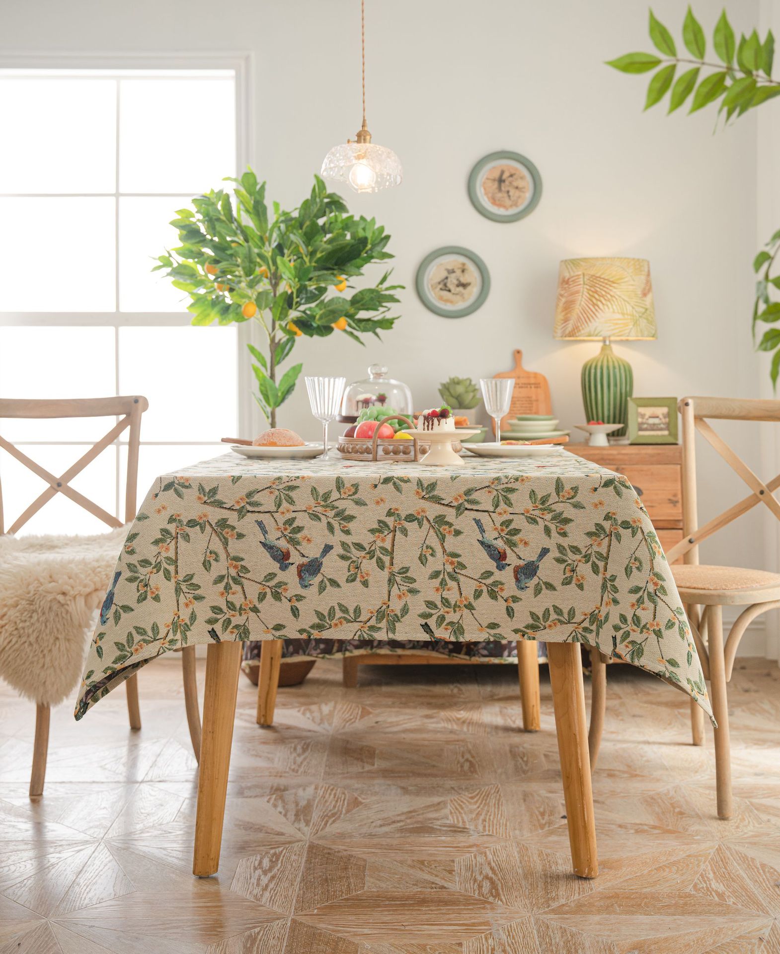 Yimanqiyun アメリカンテーブルクロス ジャカード花鳥植物長方形テーブルクロス厚手のテーブルクロス防塵工場直接供給