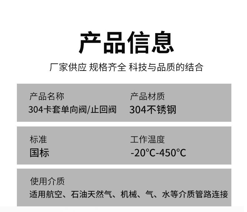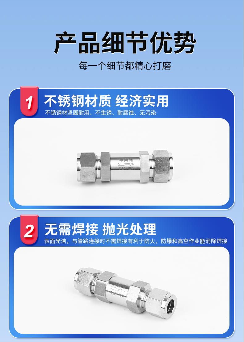 304 316ステンレスカードスリーブ逆止弁高圧逆止弁快速快速交換ハードチューブ逆止弁6/8/10