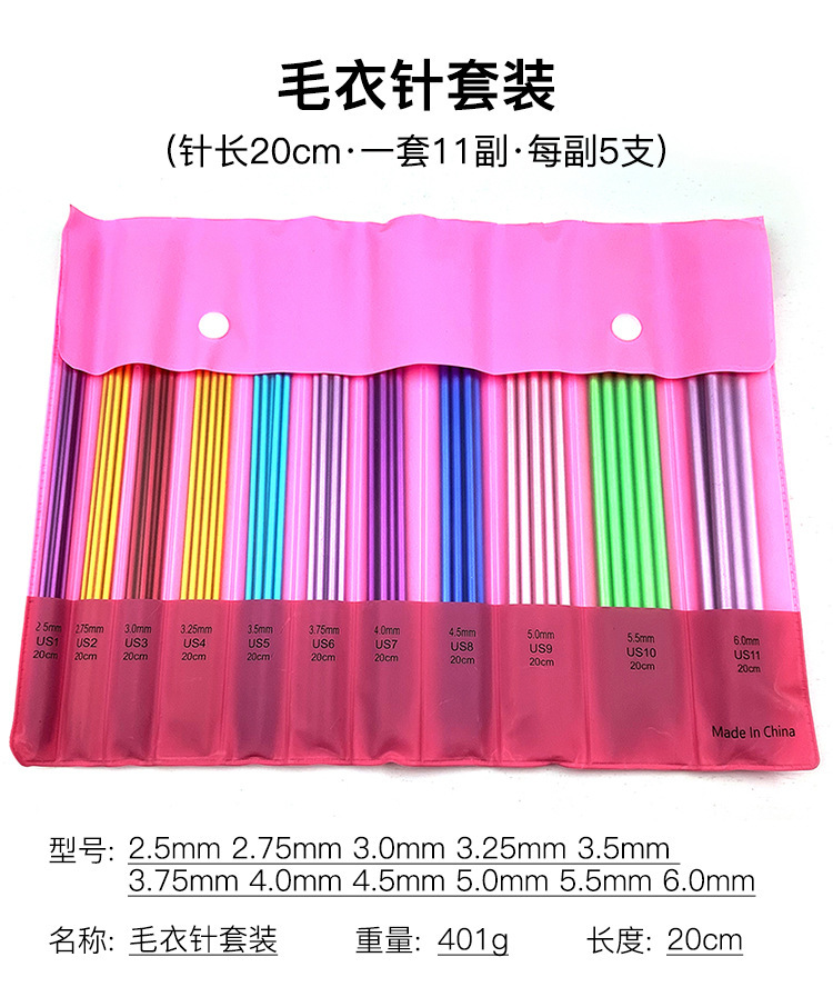 編み道具セーター針アルミナ双先セーター針20cm棒針セット11枚付き5本PVC包装