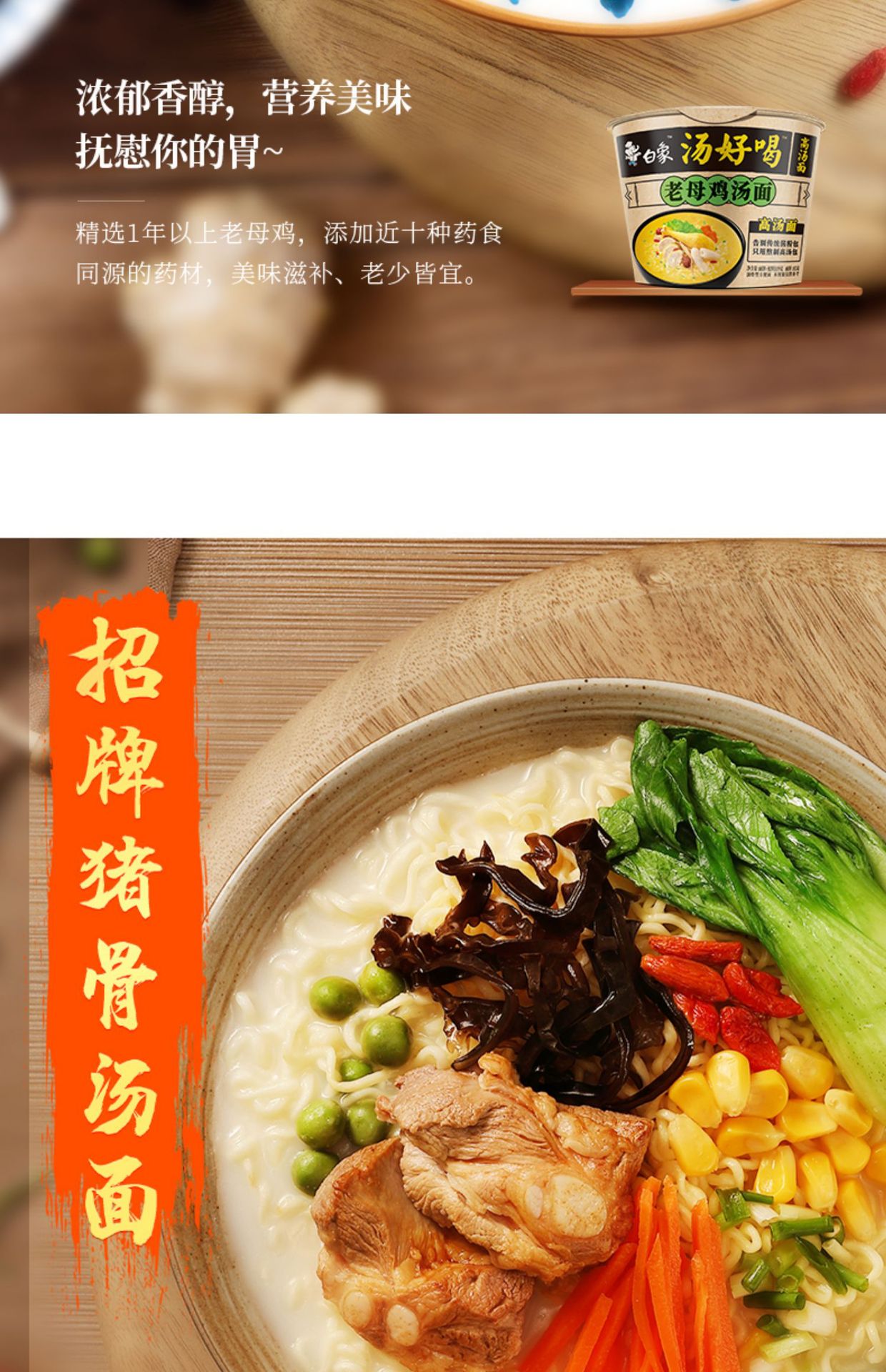 白象即席麺、美味しいスープ、大容量カップ麺、老母鶏特製豚骨味、卸売販売