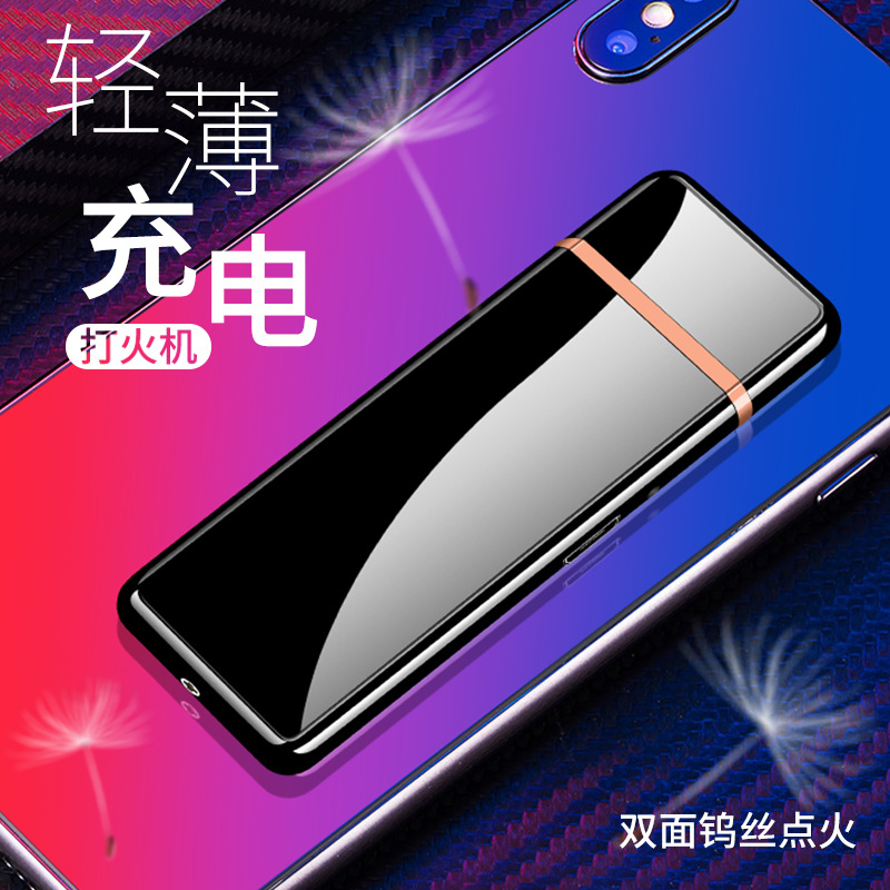 抖音同款全平台代发usb充电打火机创意迷你个性防风超薄点烟器送