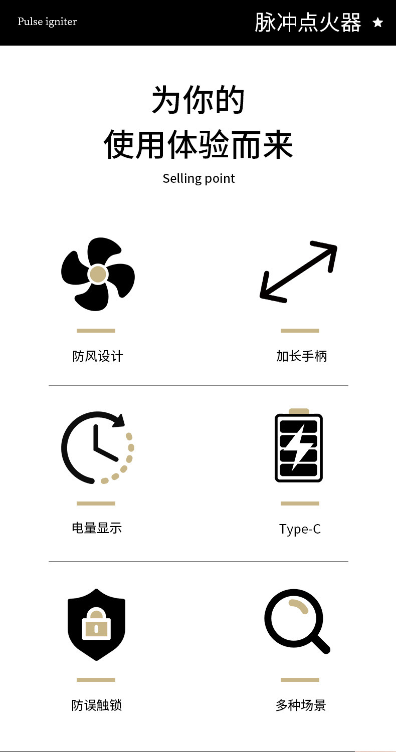 Tyep-C充电点火器香薰蜡烛蚊香煤气灶天然气干草树叶通用电弧正品