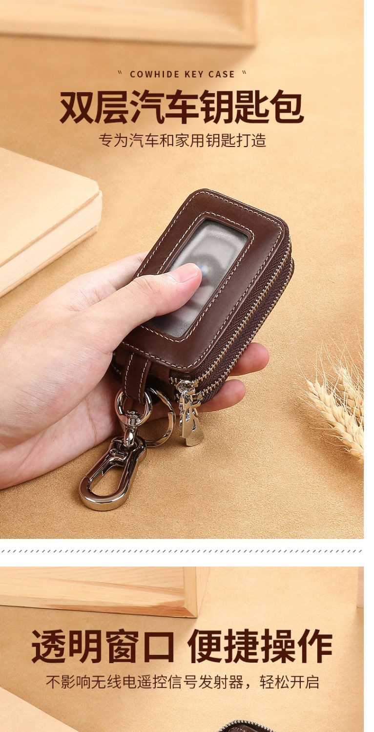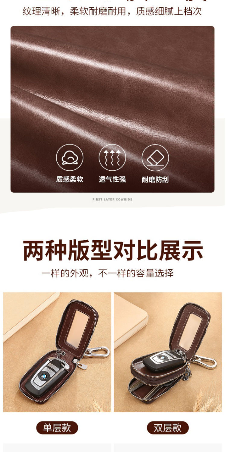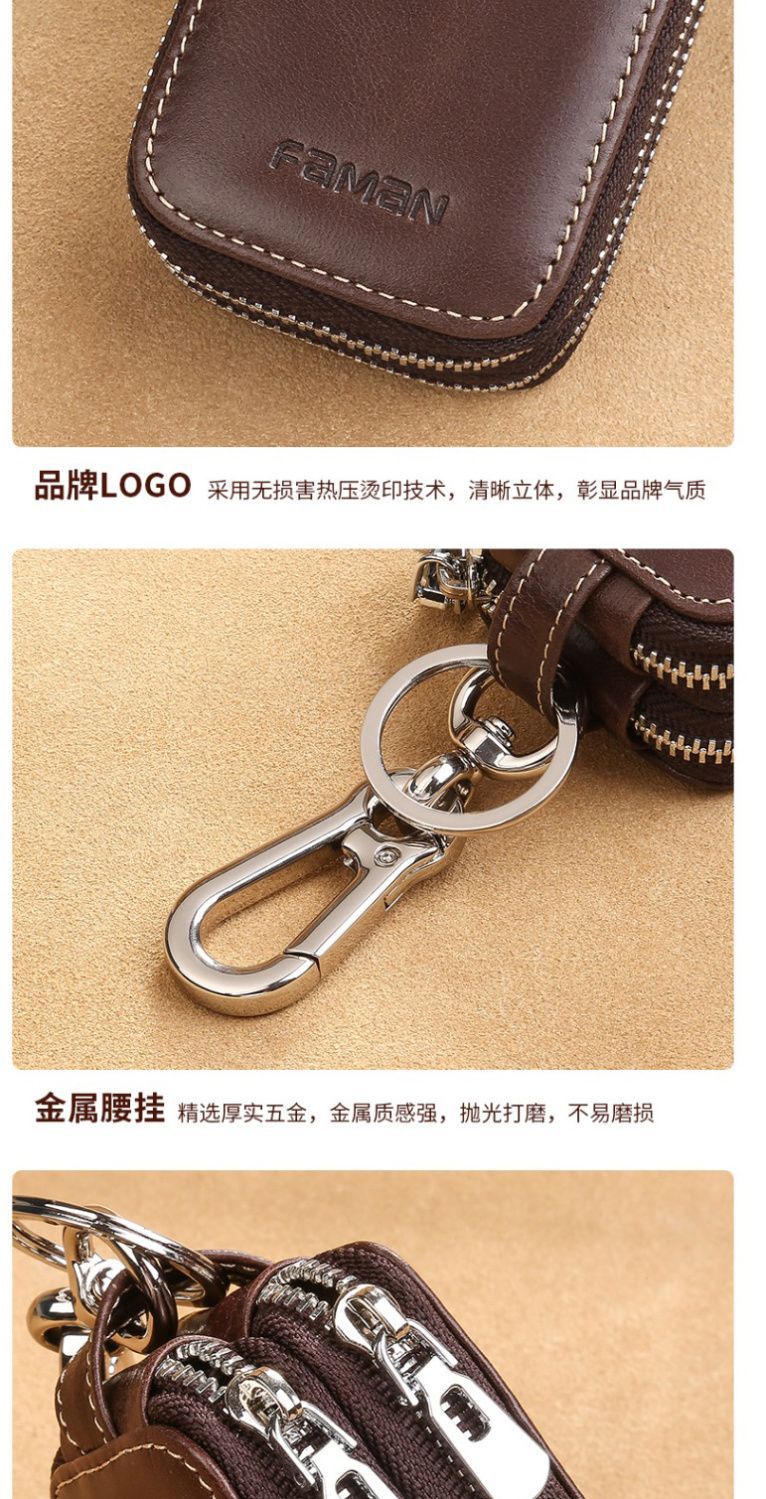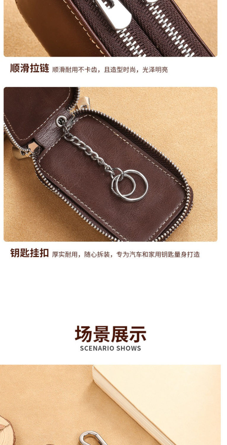 二層車のキーバッグ広州工場直販本革多機能ジッパーユニセックスキーバッグソフト