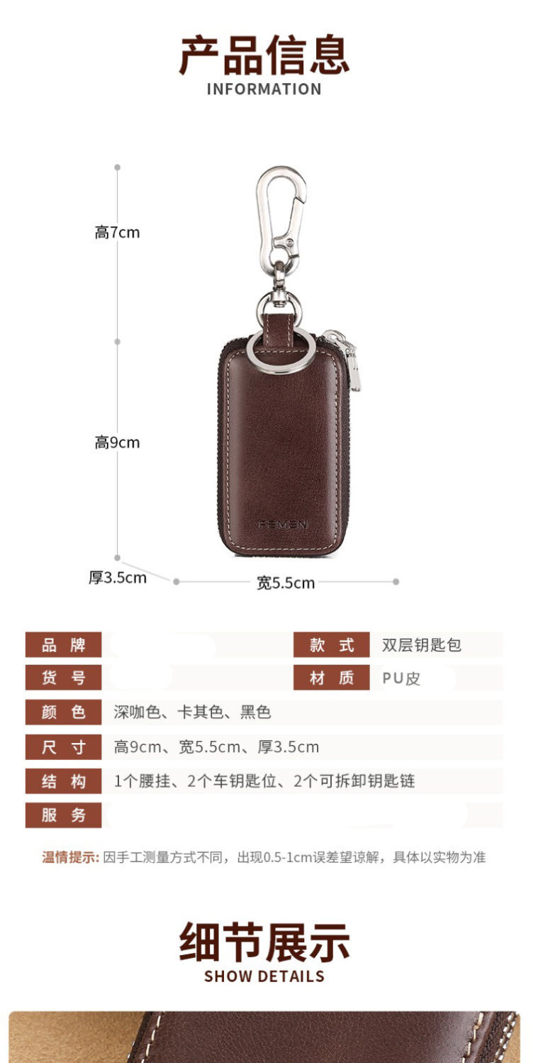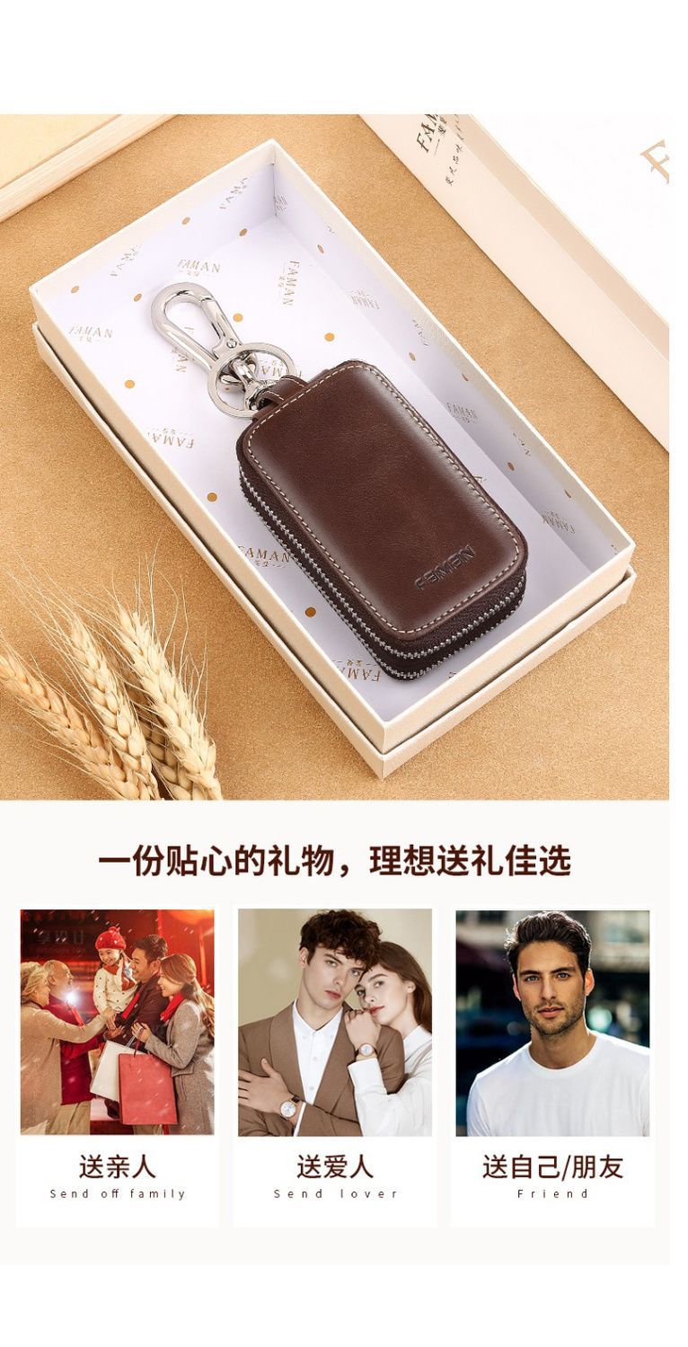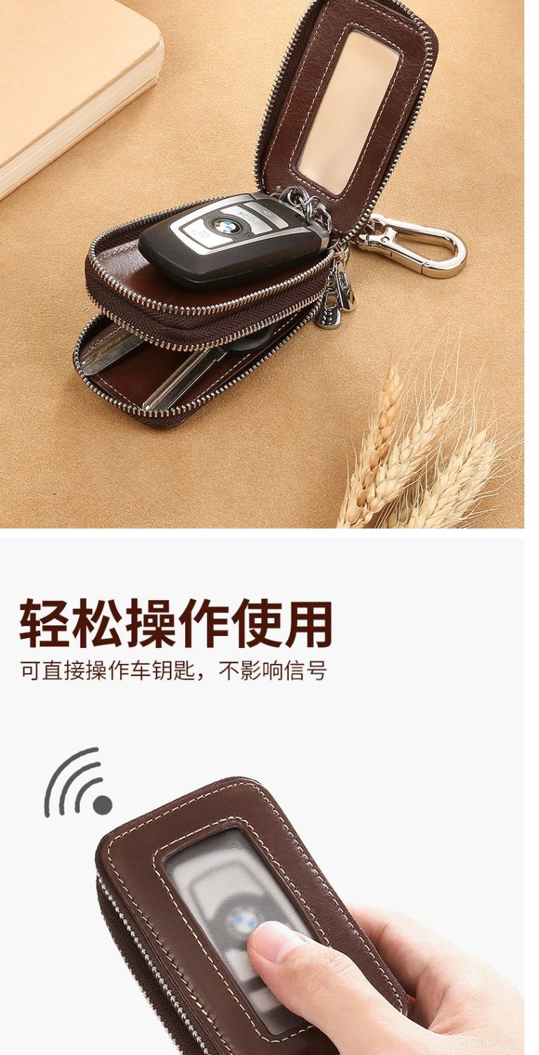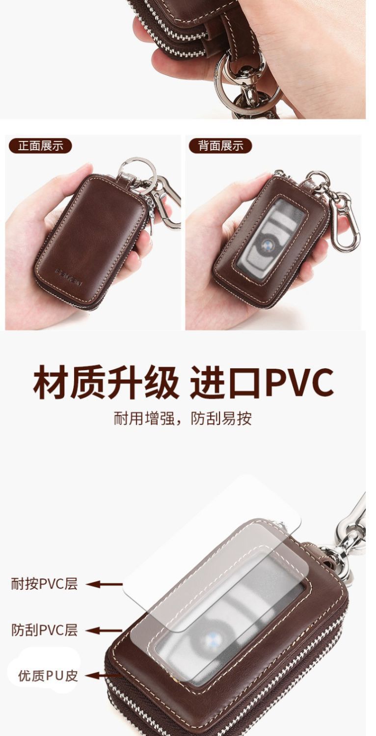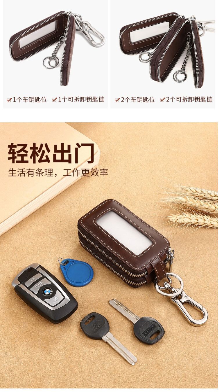 二層車のキーバッグ広州工場直販本革多機能ジッパーユニセックスキーバッグソフト