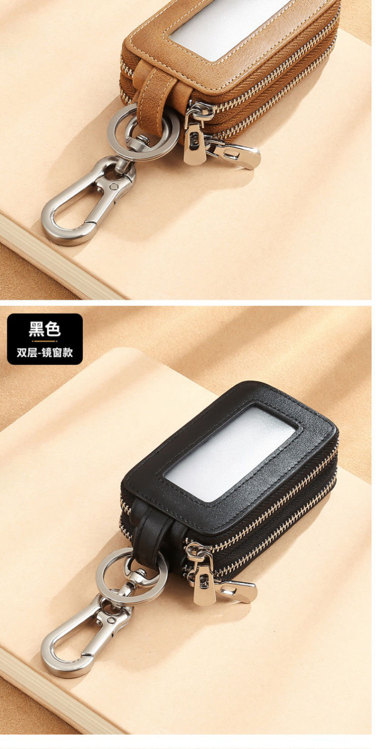 真皮高颜值双拉链钥匙包大容量新款腰挂收纳包男女通用锁匙包便携