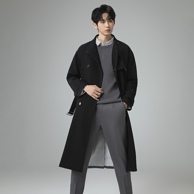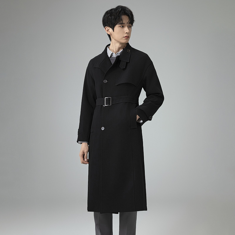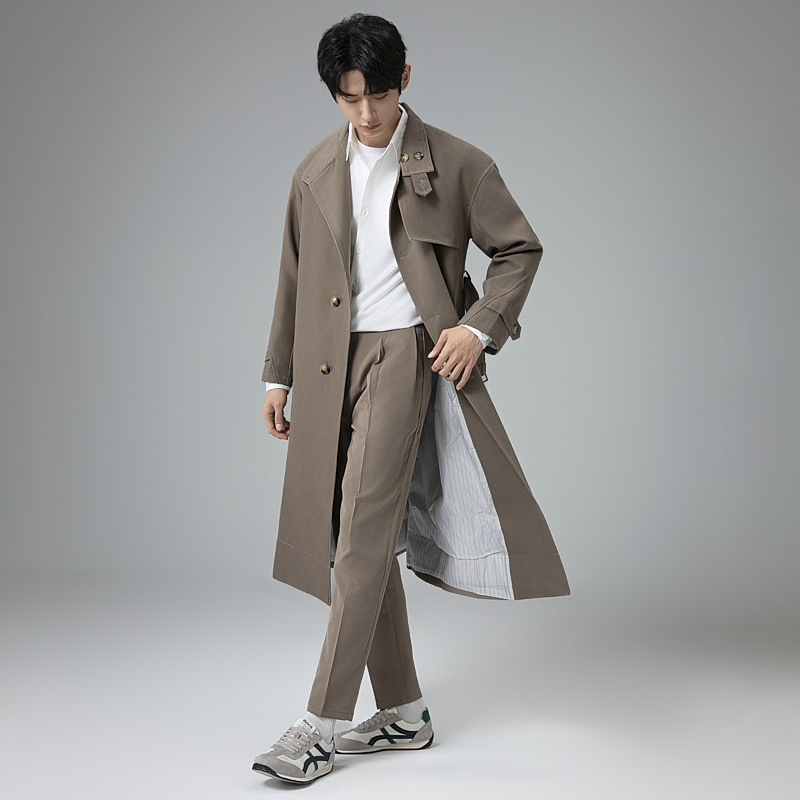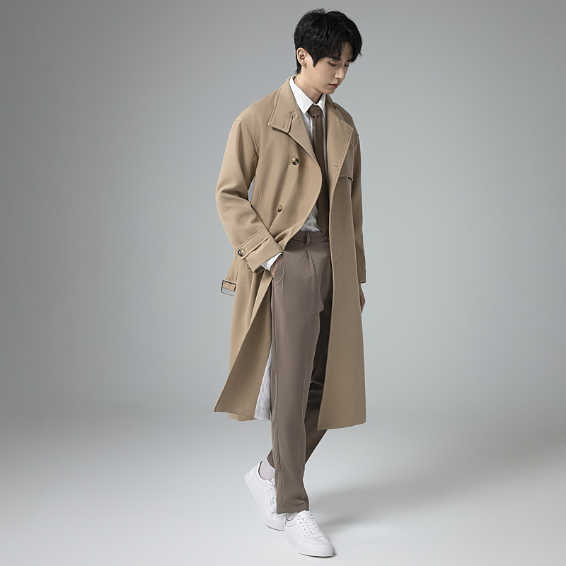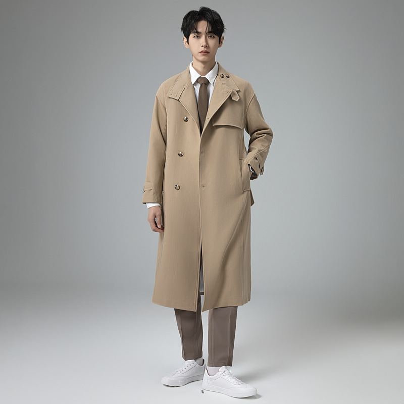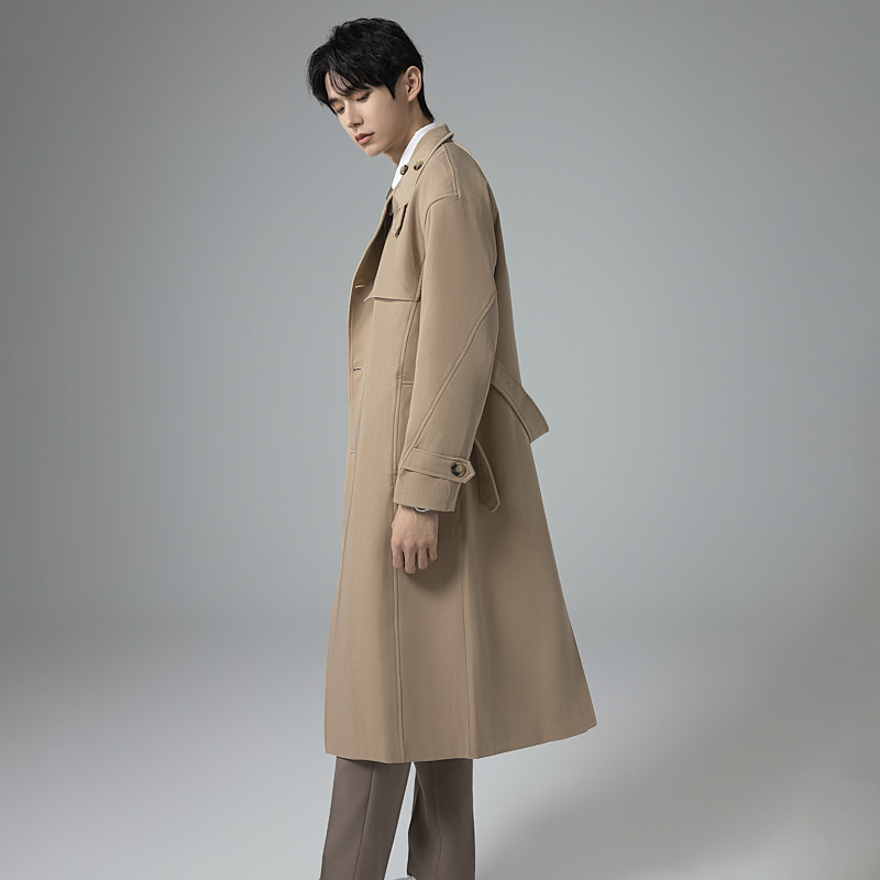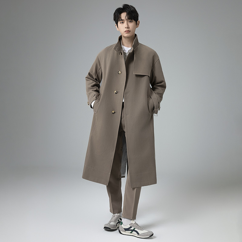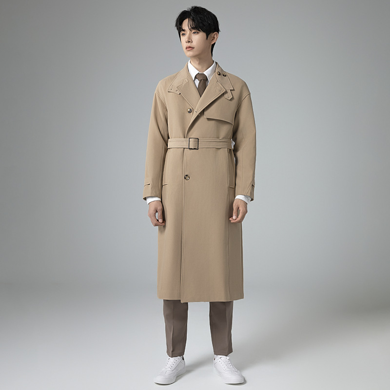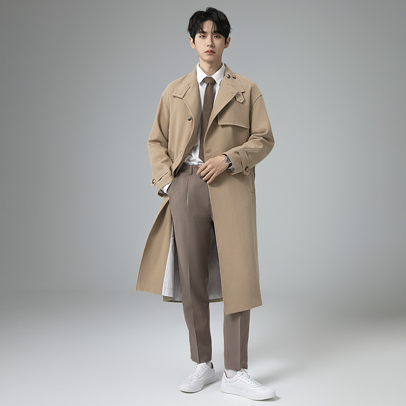 超长款过膝高级感风衣男士宽松韩版轻熟风大码外套痞帅休闲大衣男