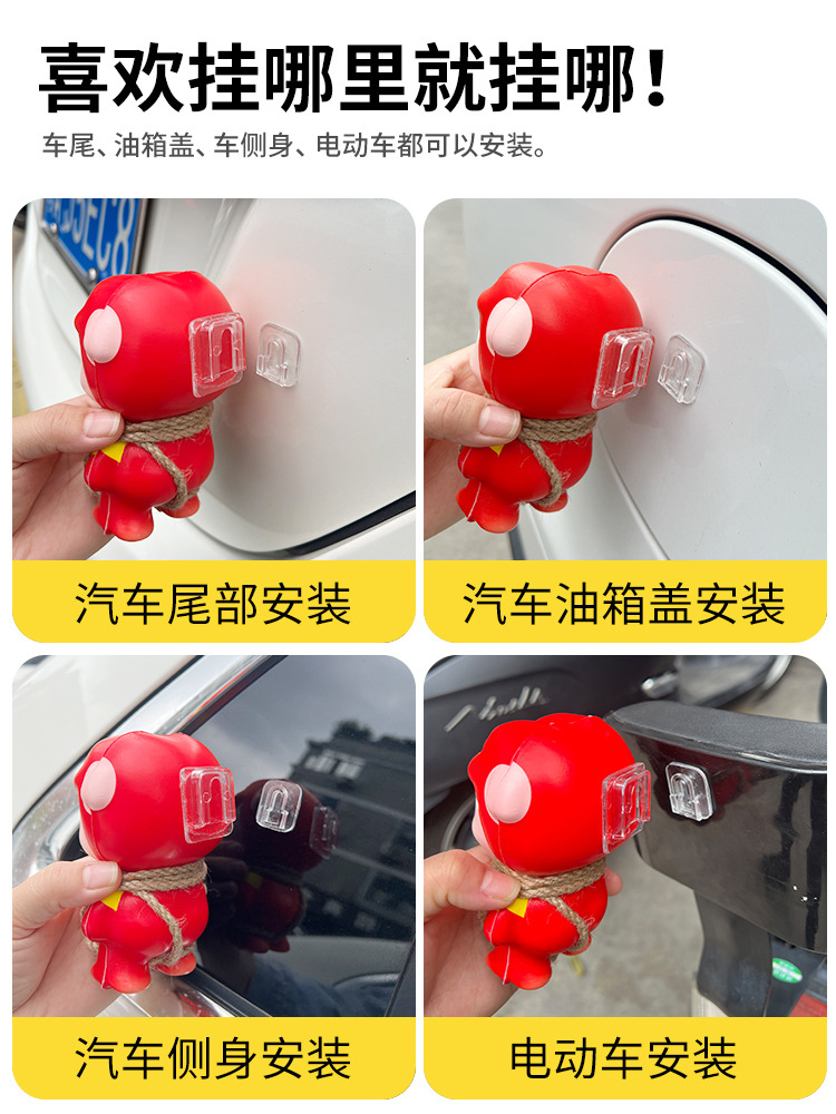 本品为创意车饰品,手工操作,可能有稍微瑕疵,但不影响整体美观,更不影响使用,绳子都是给绑好的,回去后挂件直接挂车上,车尾装饰直接通过粘贴卡扣的方式贴到自己喜欢的位置就可以了。本报价不含税,运费如有异常联系客服。