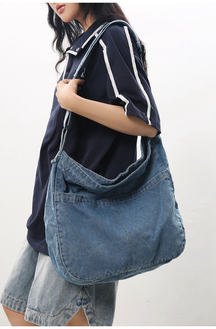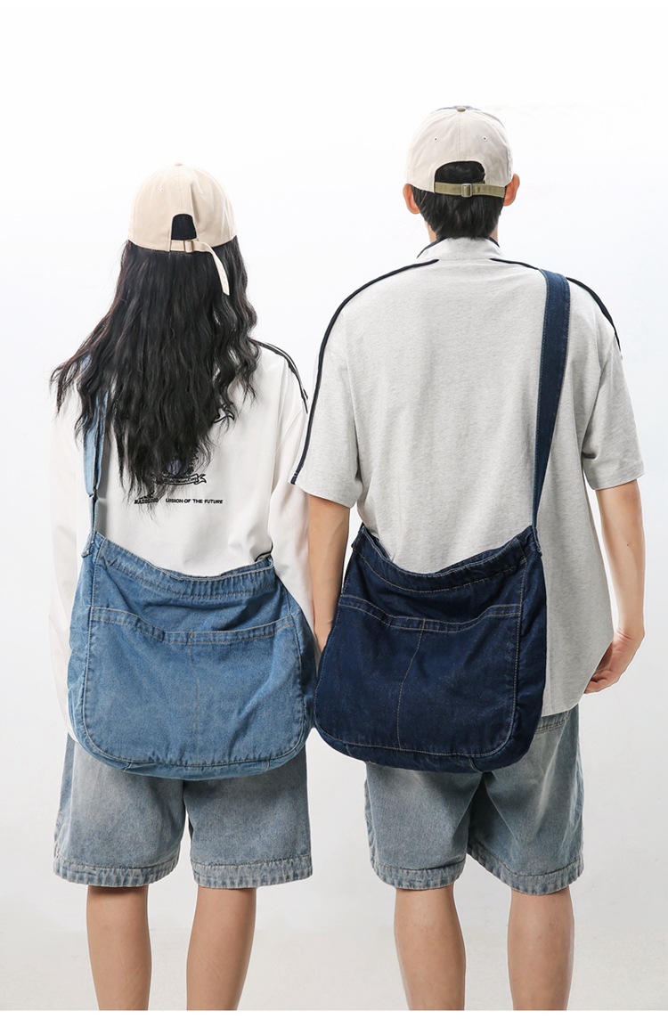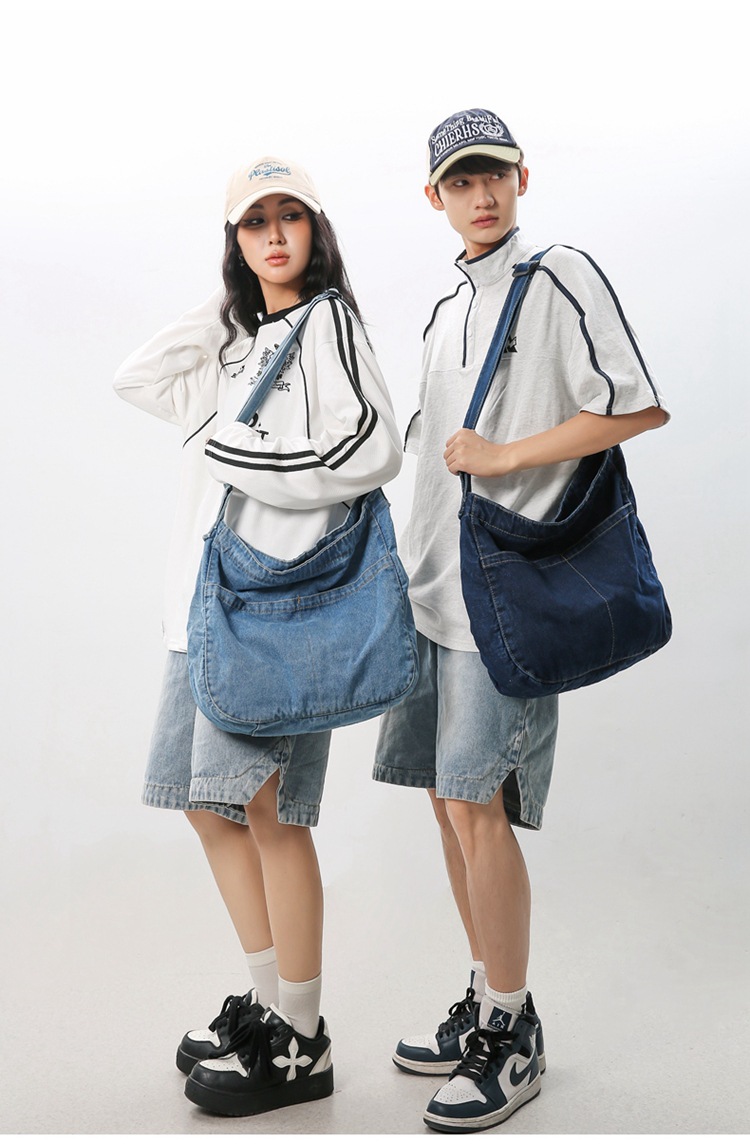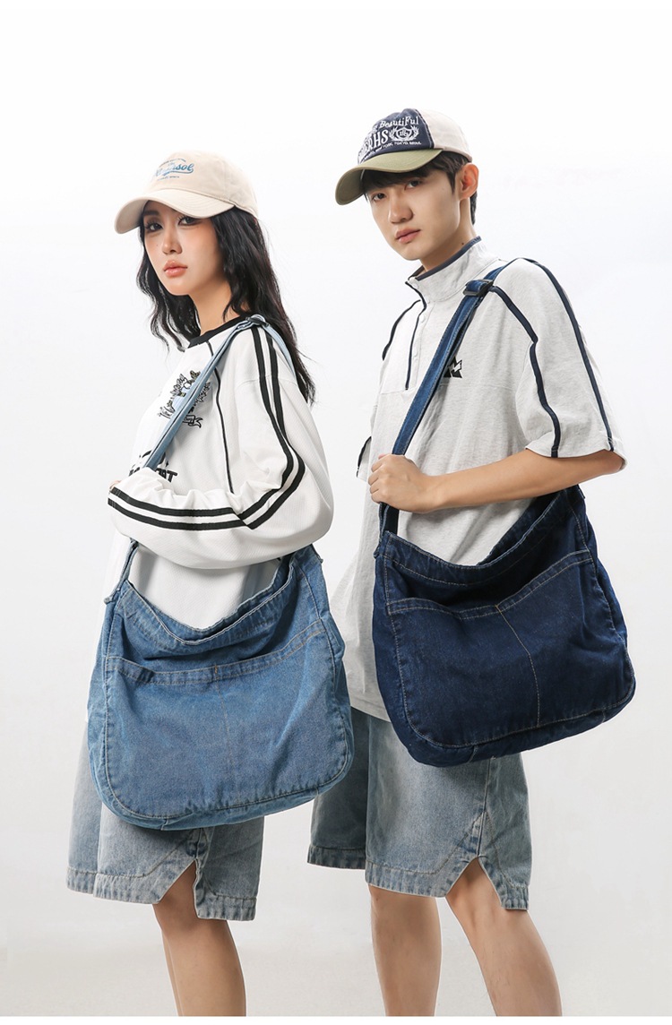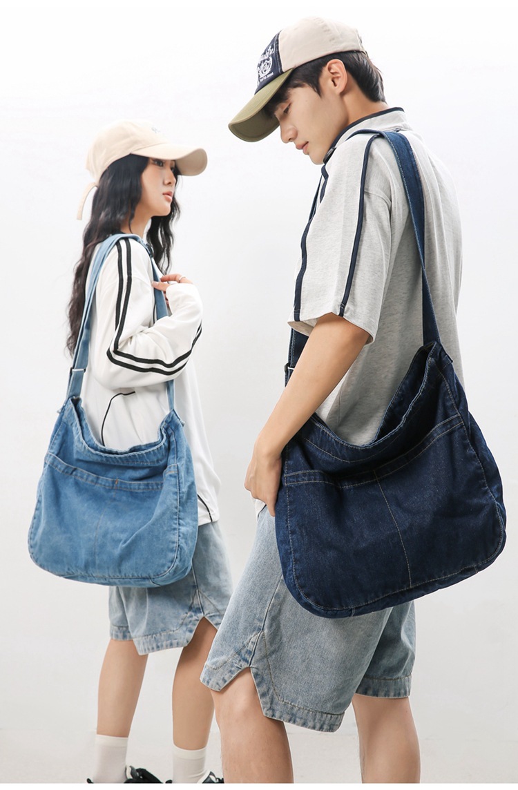 香港風カップルデニムバッグ大容量キャンパス学生カジュアルショルダーバッグレトロキャンバスショルダーバッグ女性バッグ