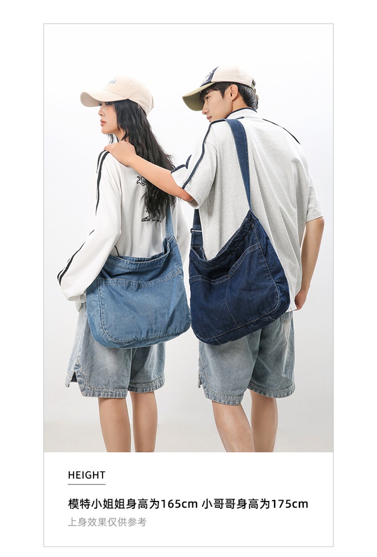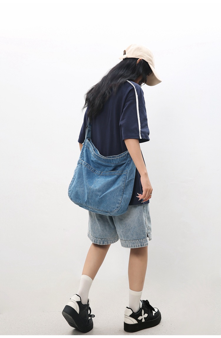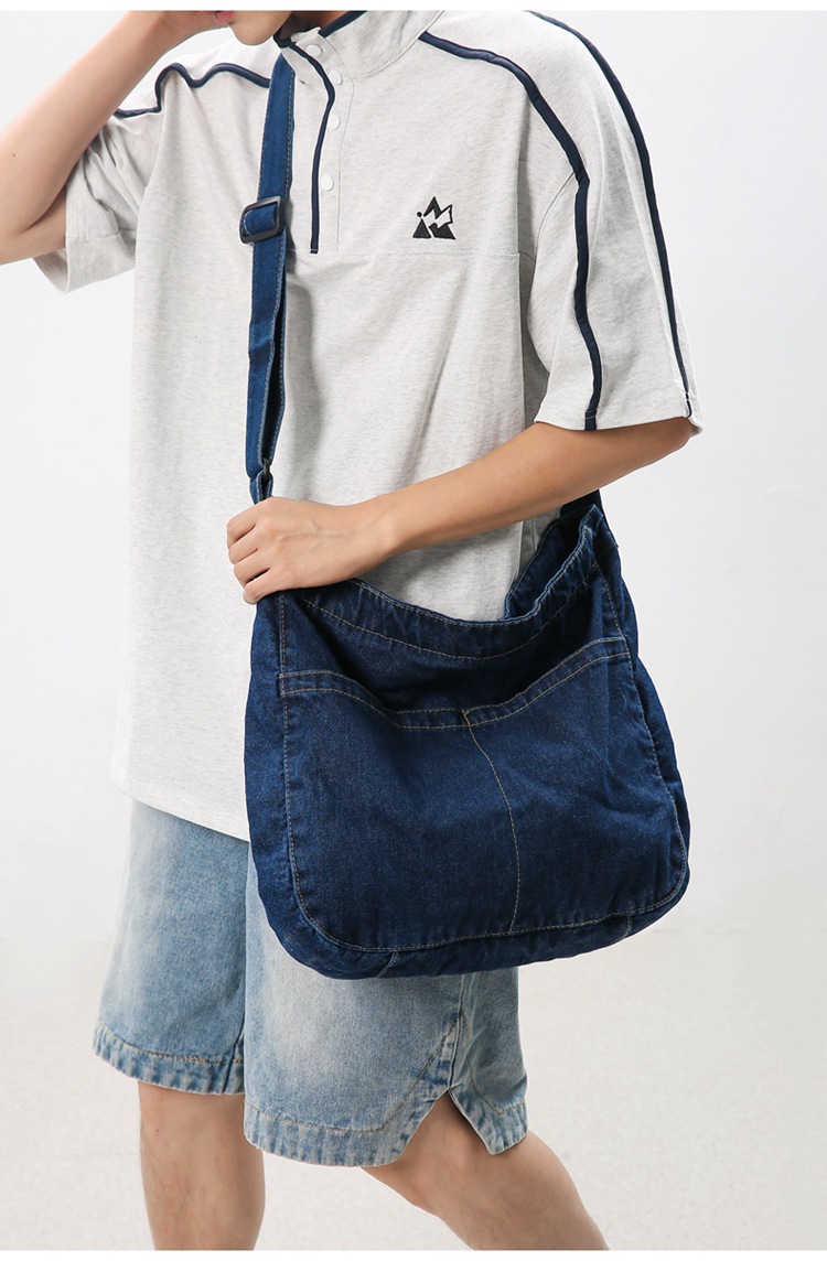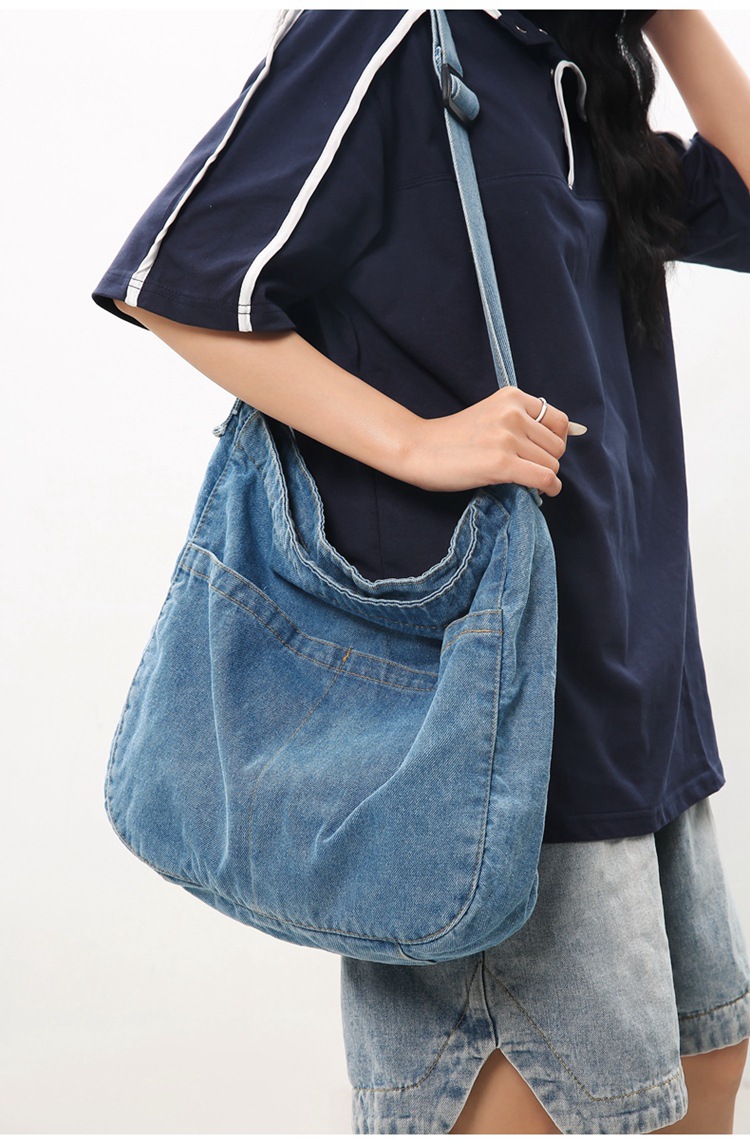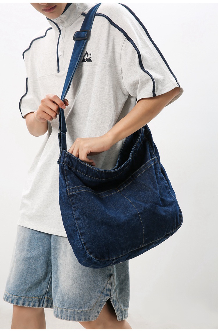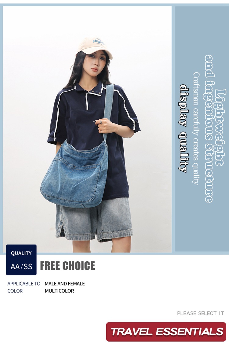 香港風カップルデニムバッグ大容量キャンパス学生カジュアルショルダーバッグレトロキャンバスショルダーバッグ女性バッグ