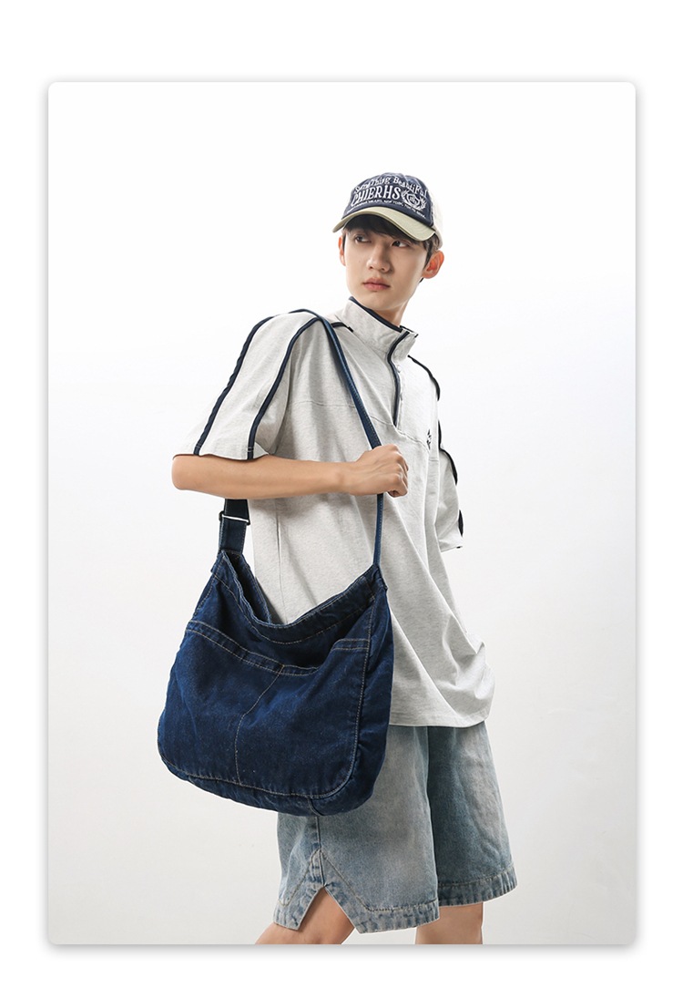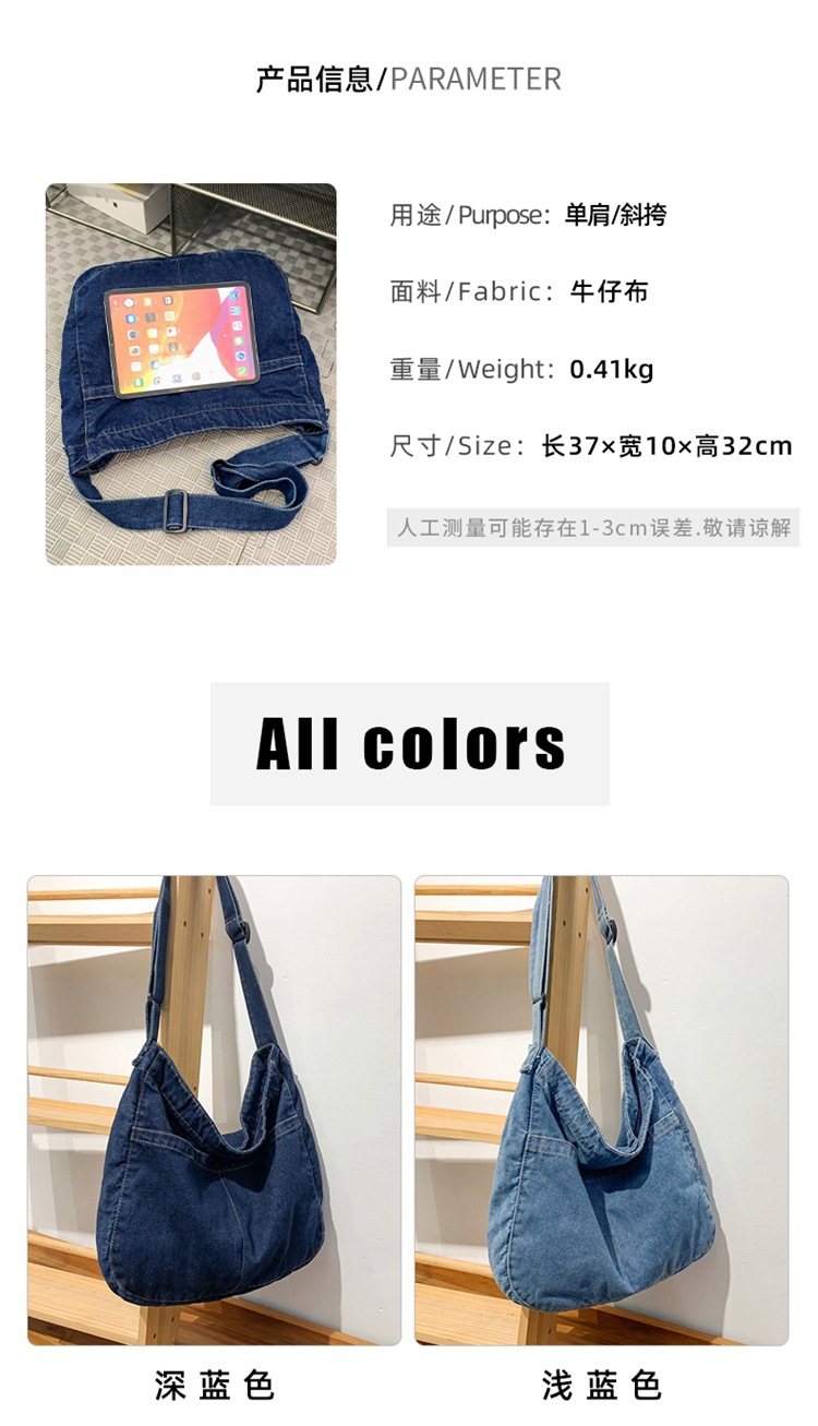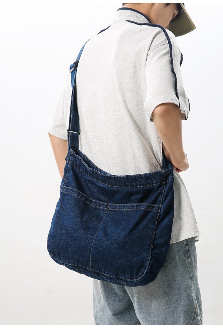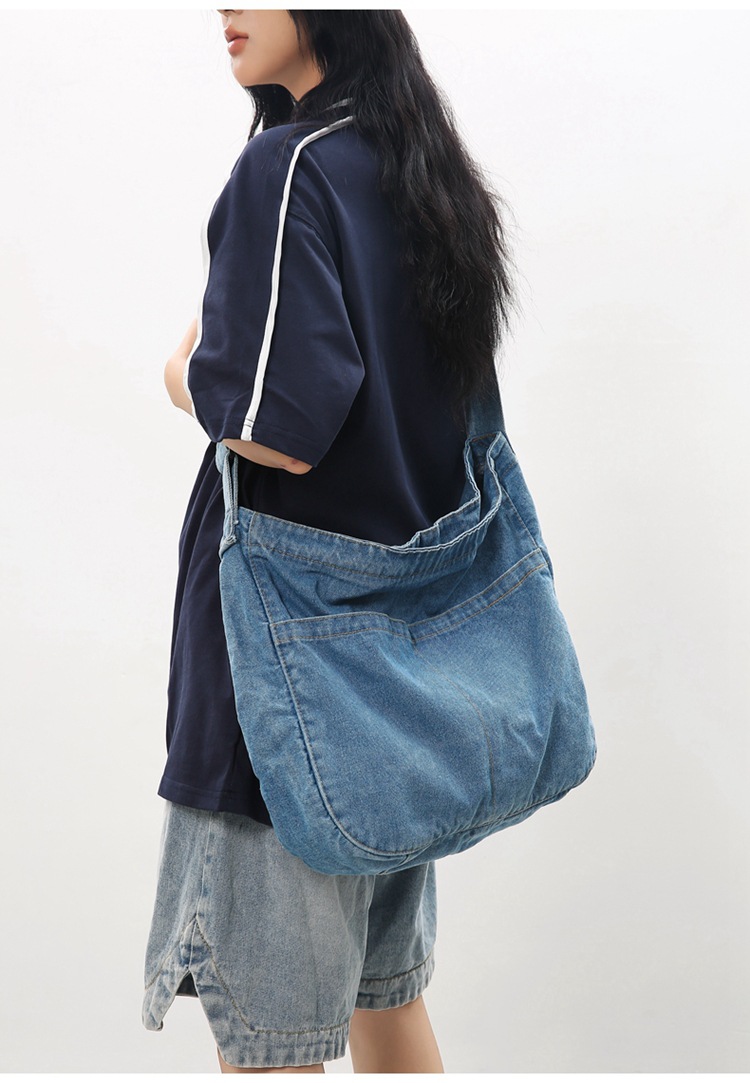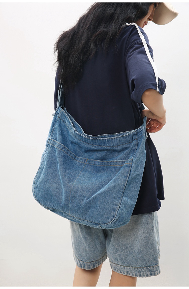 香港風カップルデニムバッグ大容量キャンパス学生カジュアルショルダーバッグレトロキャンバスショルダーバッグ女性バッグ
