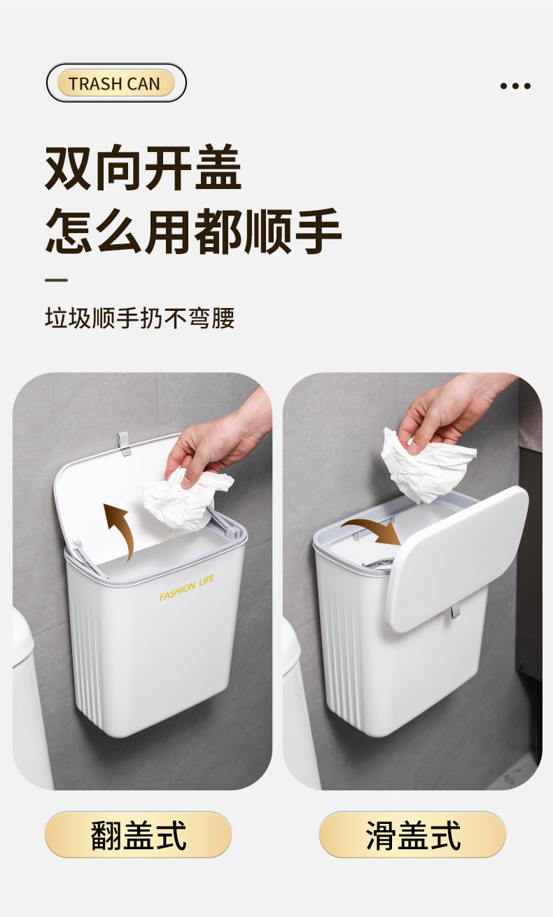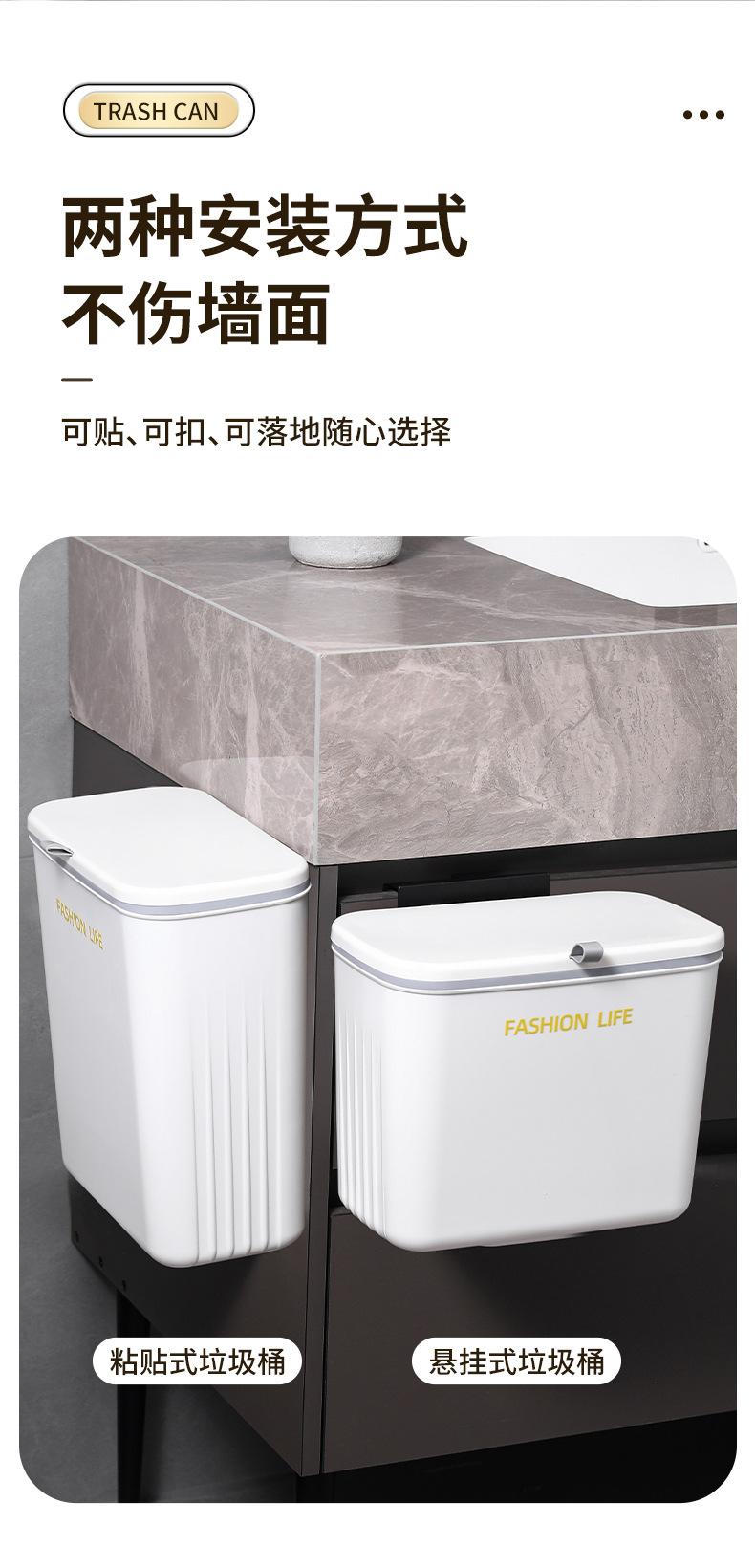 垃圾桶带盖夹缝大号垃圾桶壁挂式免安装厨房卫生间两用杂物收纳桶