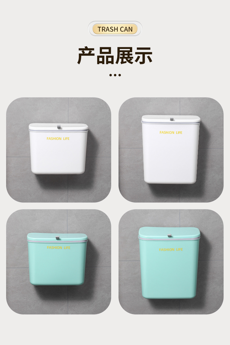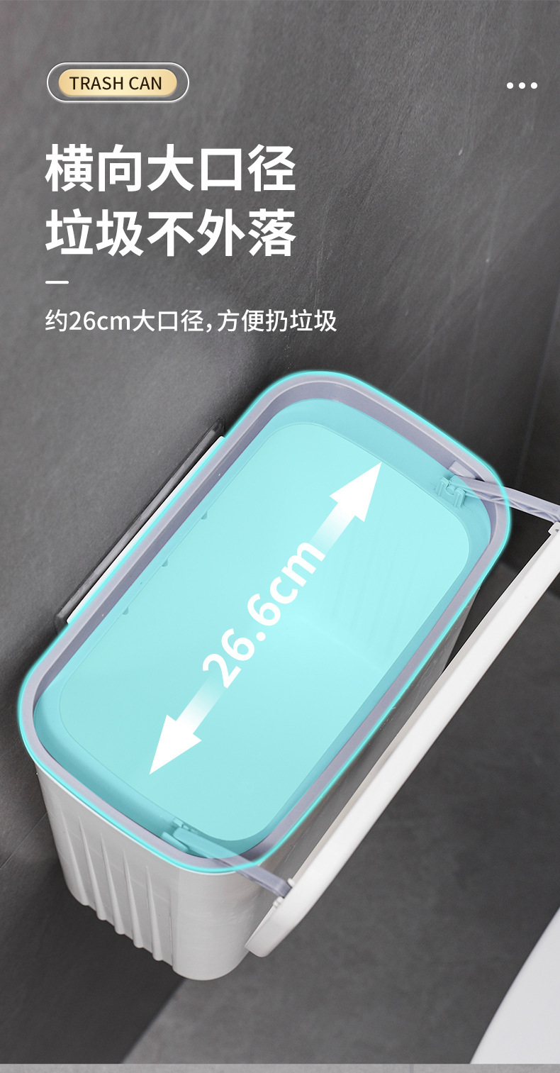 キッチンとバスルーム兼用の壁掛けゴミ箱、蓋付き、穴あけ不要の設置、大容量収納、狭い隙間にも対応、キャビネットに最適
