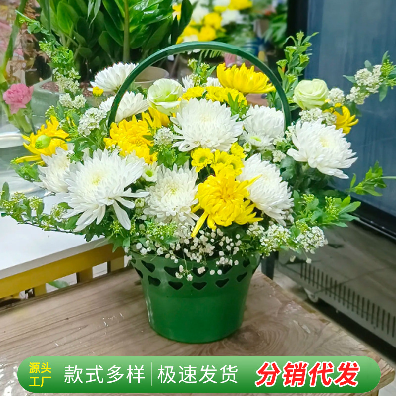 清明节菊花花篮大号小号塑料篮子花店用品鲜花假花花篮花店用品