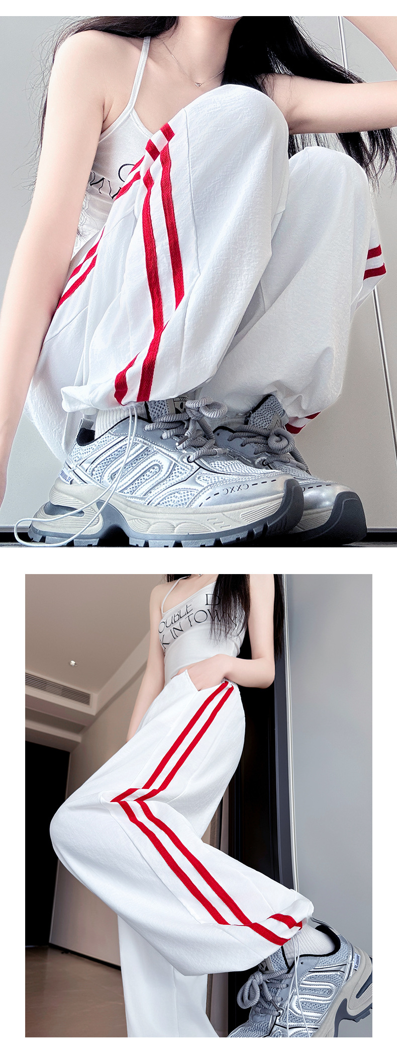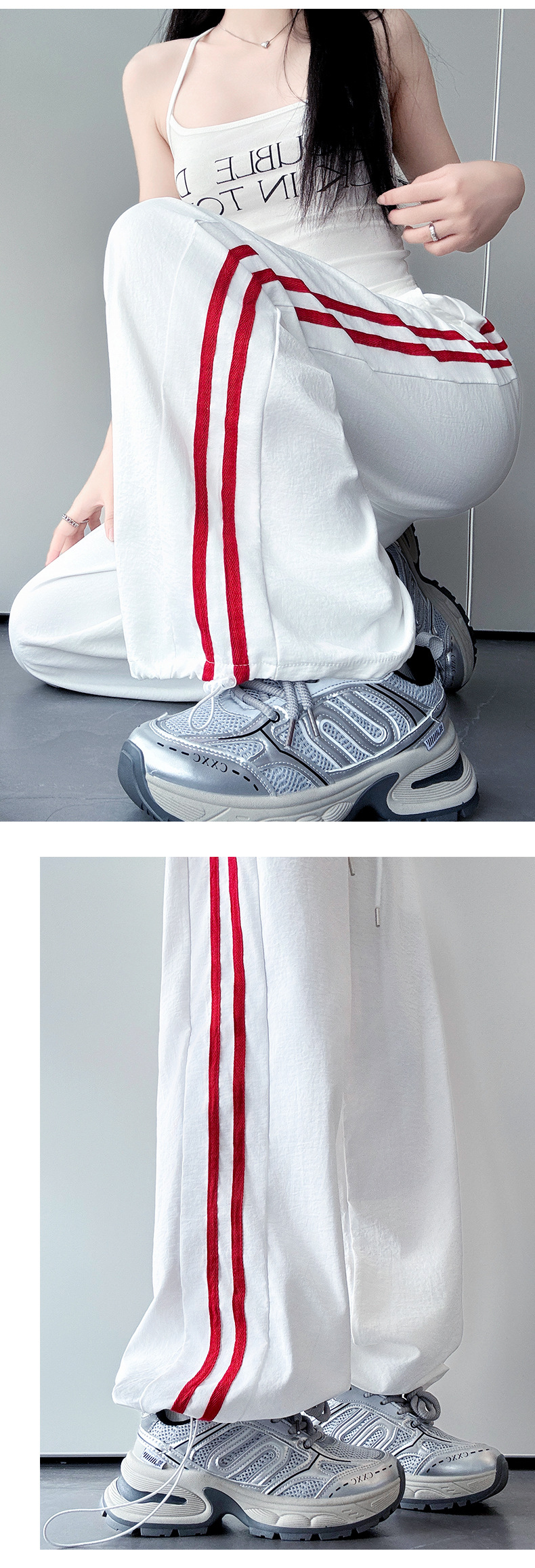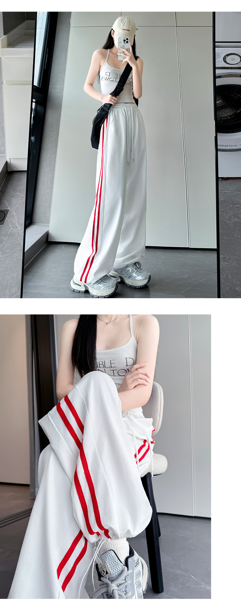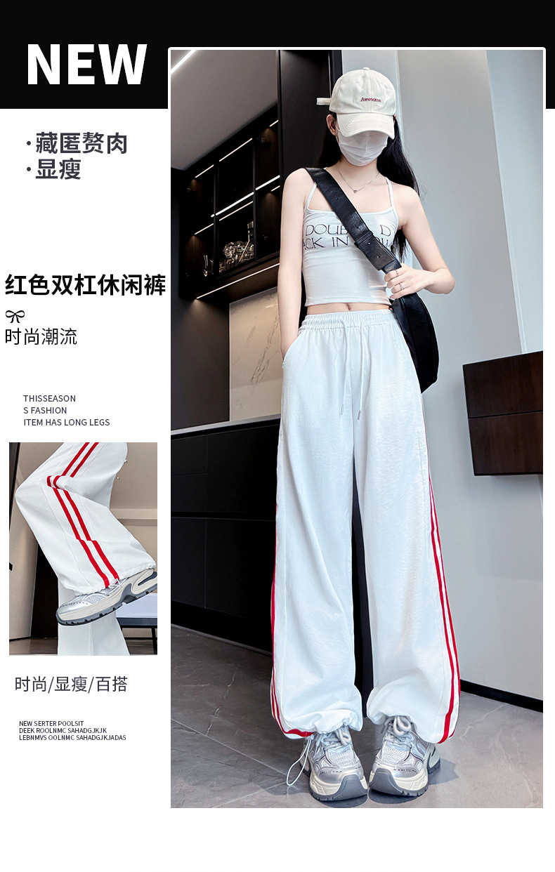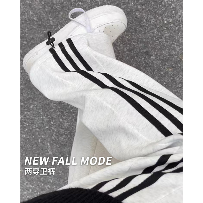 白とグレーのルルと同じスタイルのパンツ女性の春と秋の新しいルーズナローワイドレッグパンツスウェットパンツスリムストレートスポーツパンツ