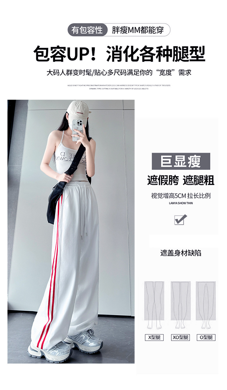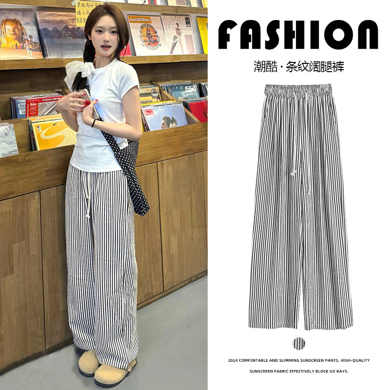 黑白竖条纹裤子女春秋夏薄款显瘦休闲慵懒遛弯裤高腰直筒阔腿长裤