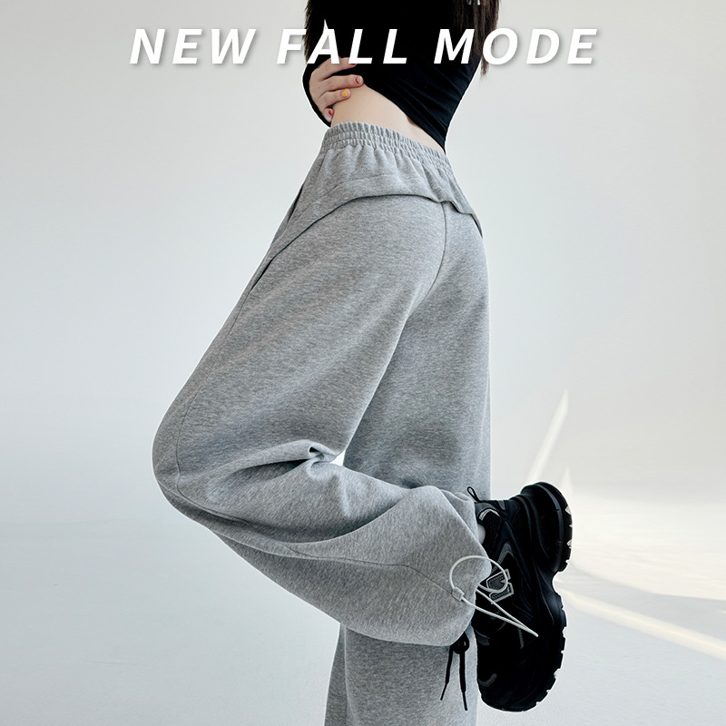 灰色美式运动裤女春秋新款高腰显瘦休闲卫裤直筒小个子提臀阔腿裤