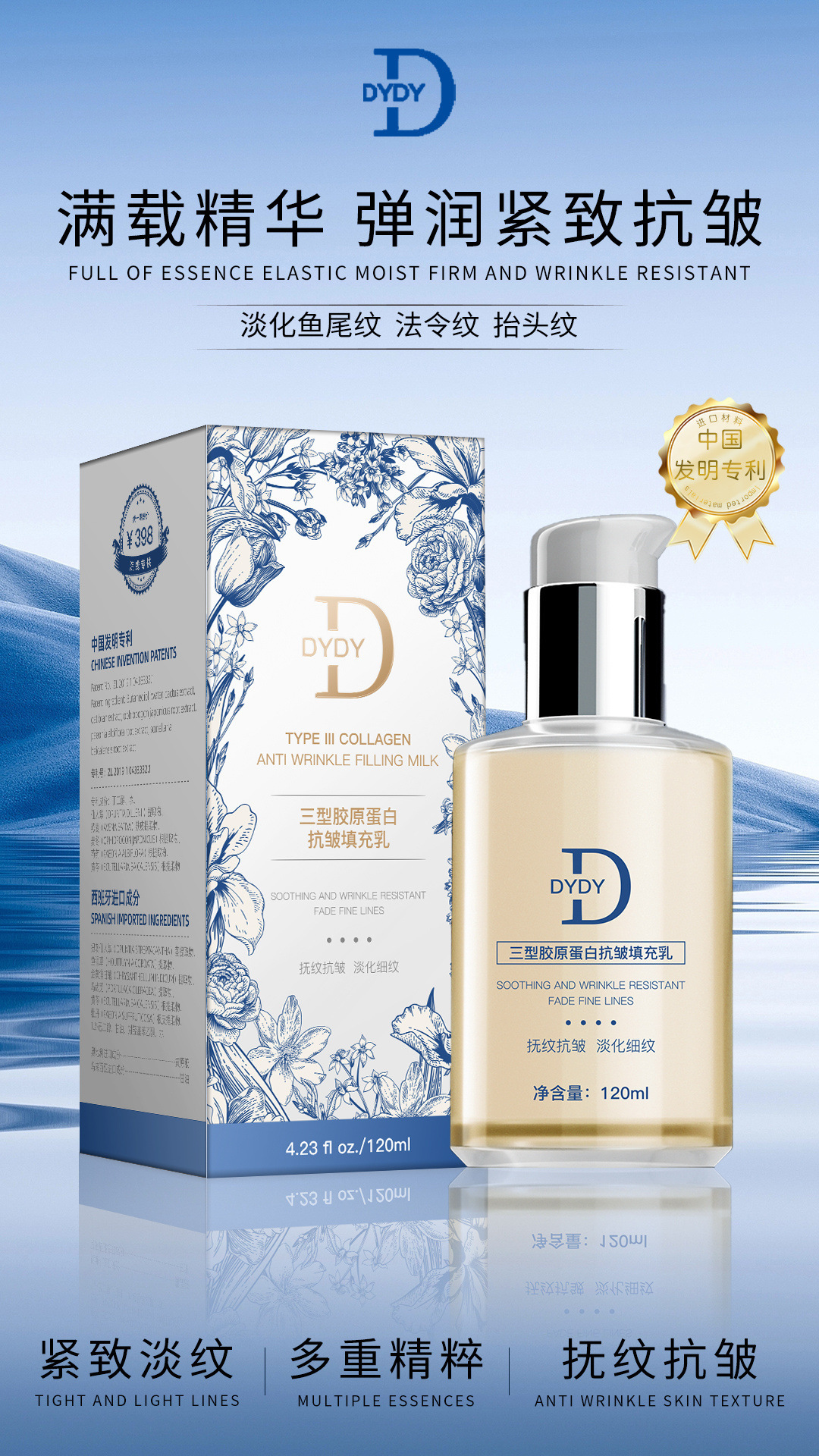 DYDY三型コラーゲン抗シワ充填乳はきつくて薄い小紋を補って水を補います。