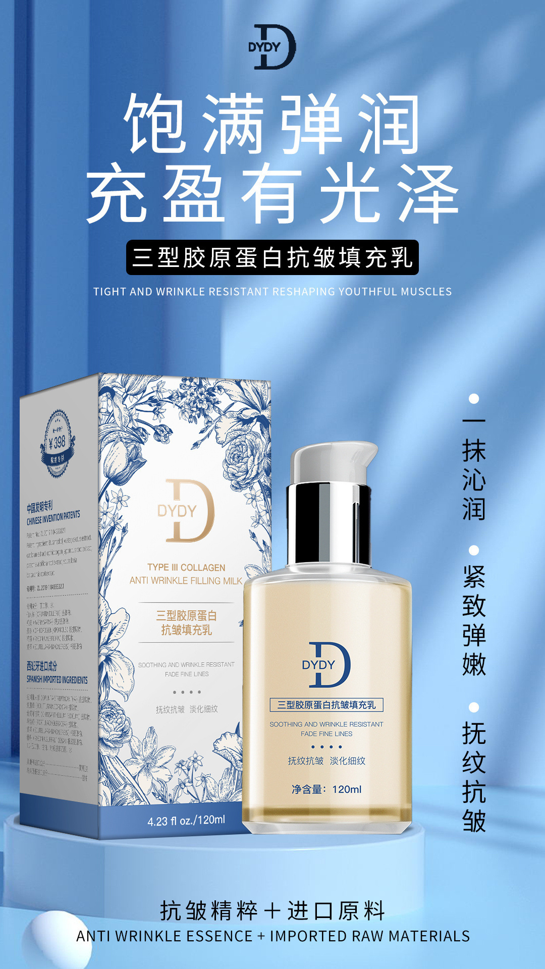 DYDY タイプ 3 コラーゲン アンチリンクル フィリング ミルク ファーミング、小じわの減少 保湿ローション ブランド フラット オフライン