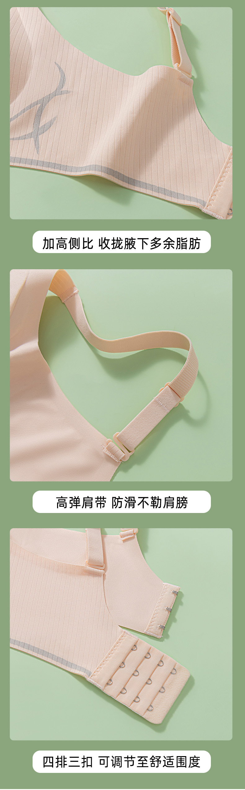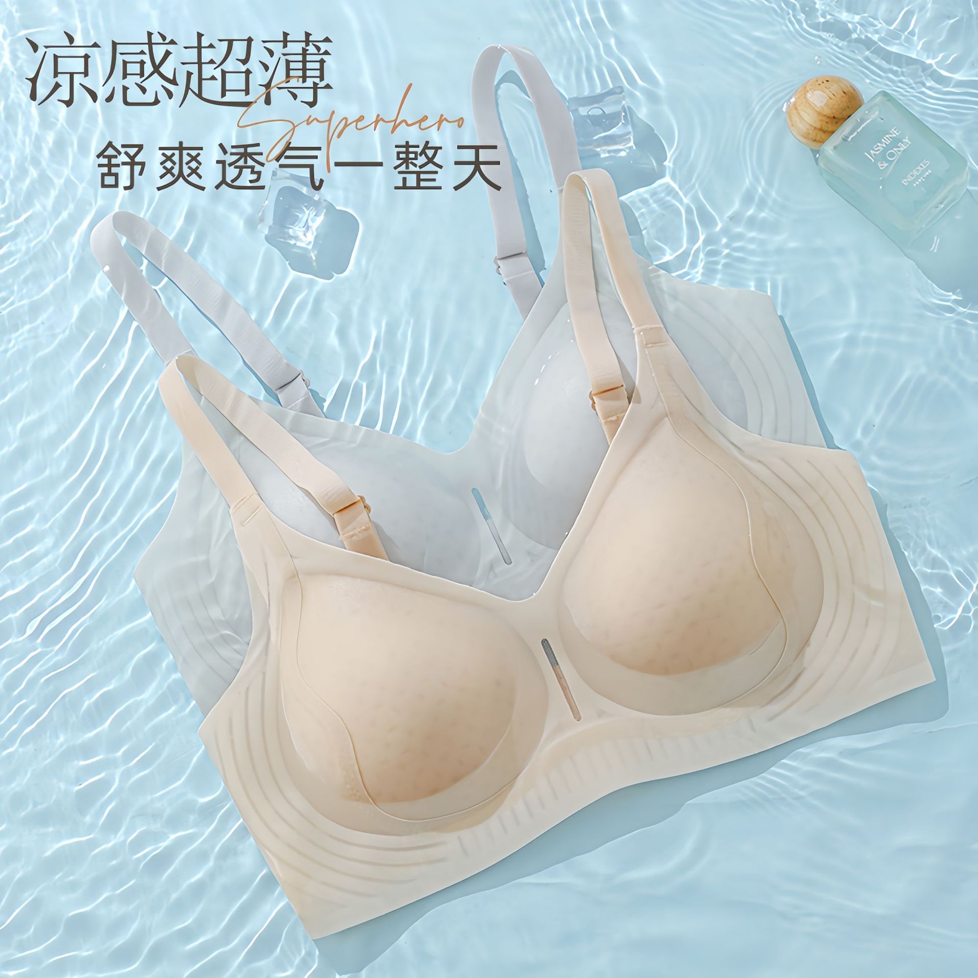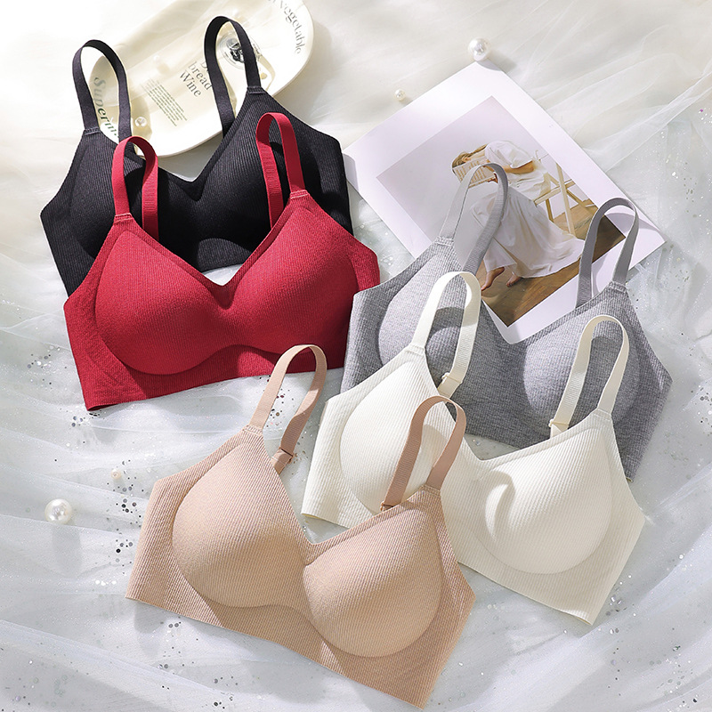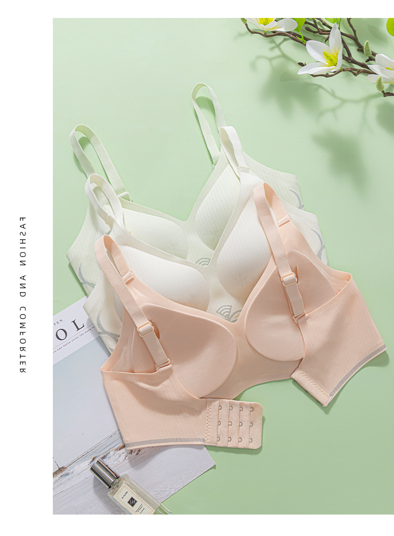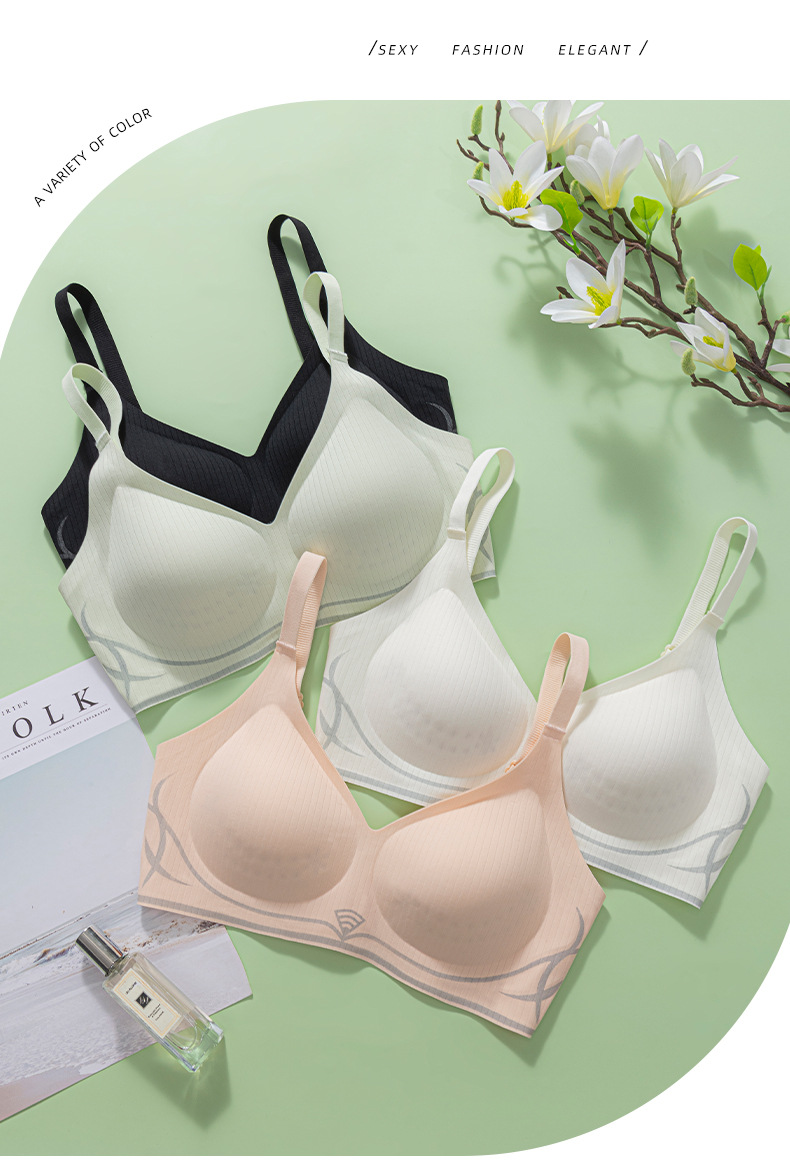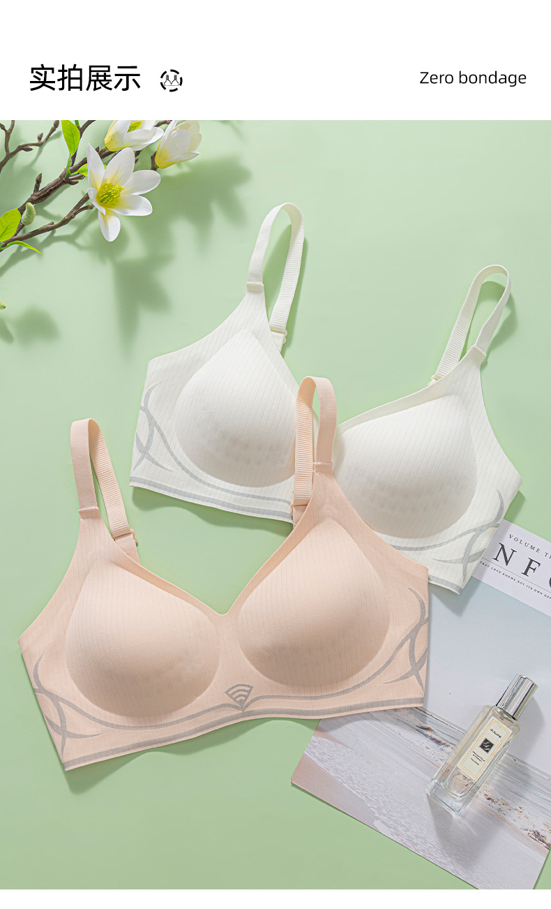 小胸聚拢透气无钢圈固定薄杯内衣女收副乳防下垂果冻条软支撑文胸