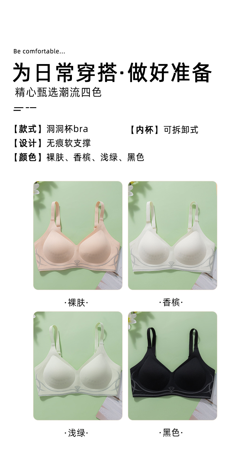 夏用薄型涼感シームレスブラジャー 女性用 小胸用 プッシュアップ固定カップ ホールカップ たるみ防止 ソフトサポートブラ