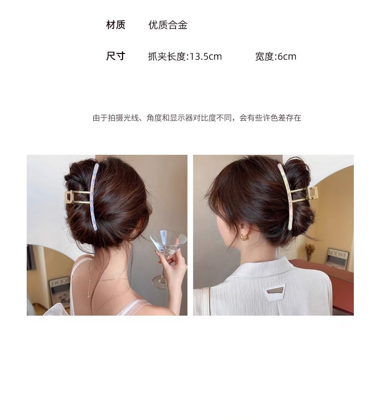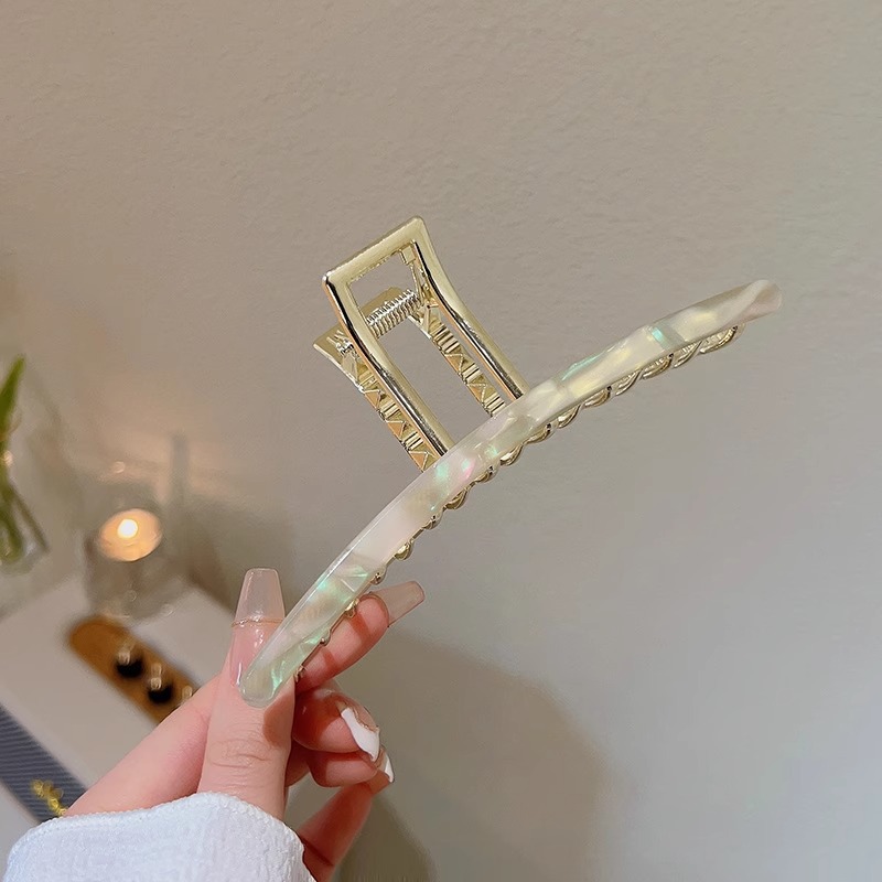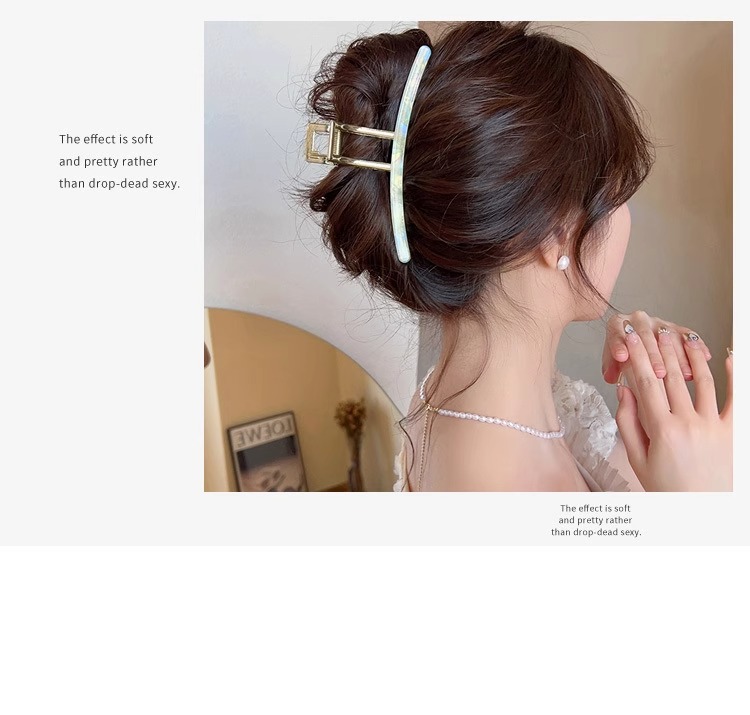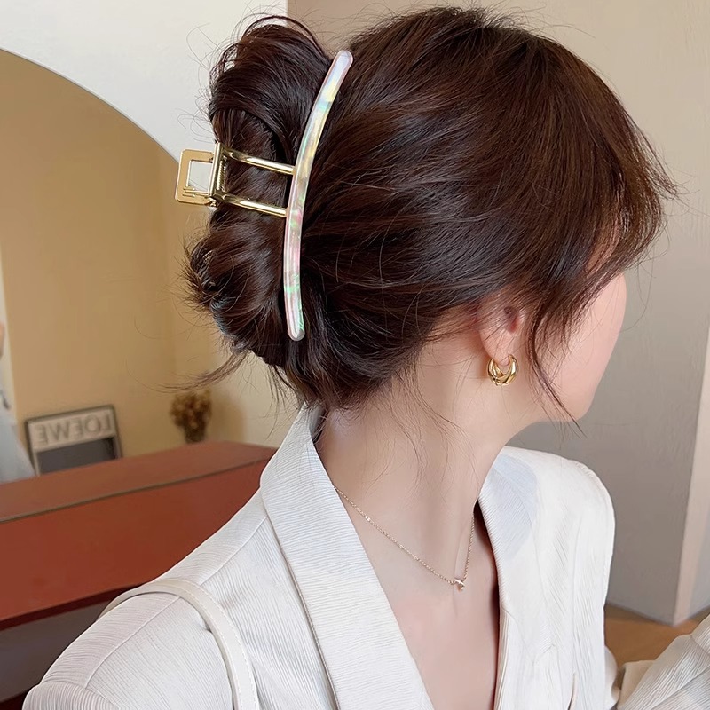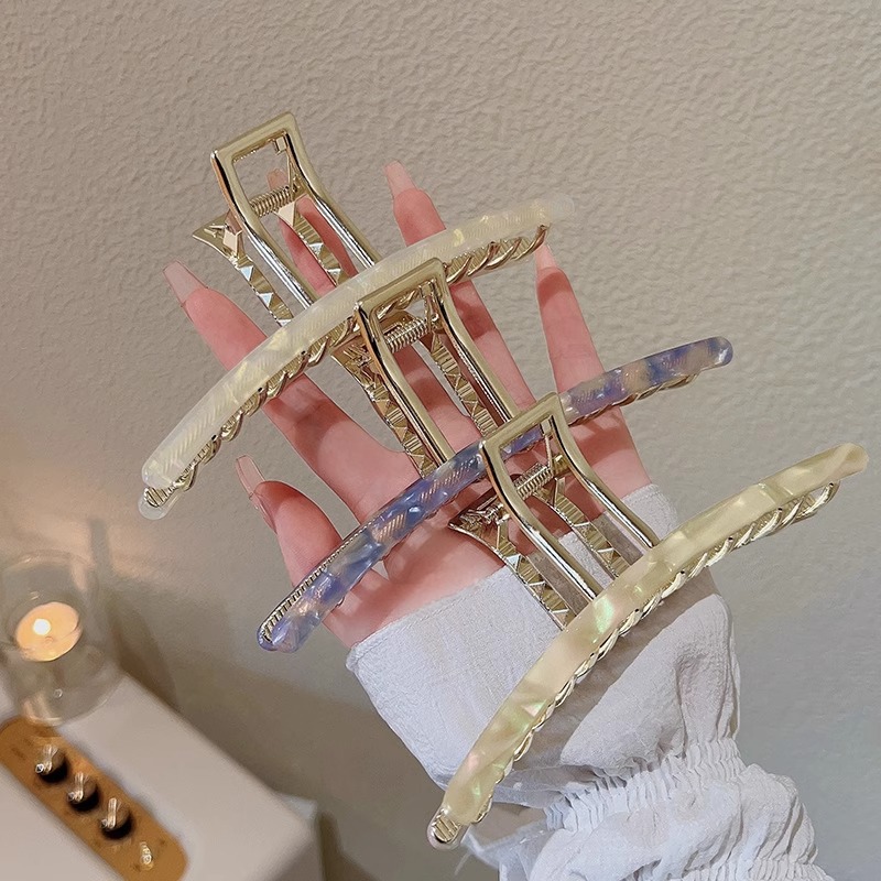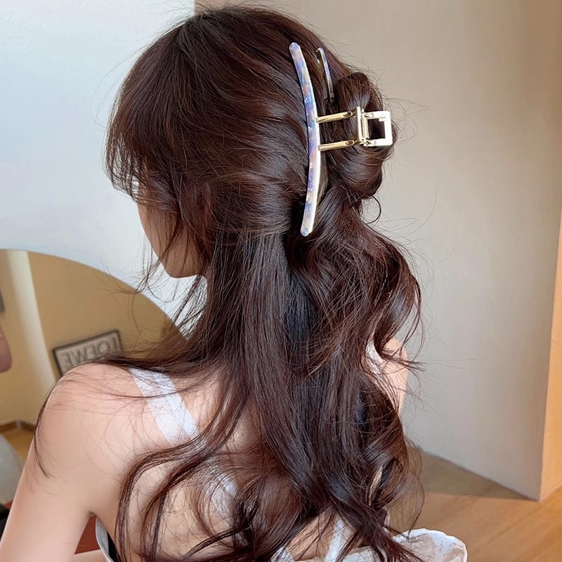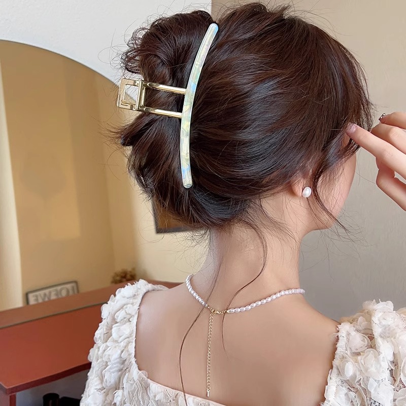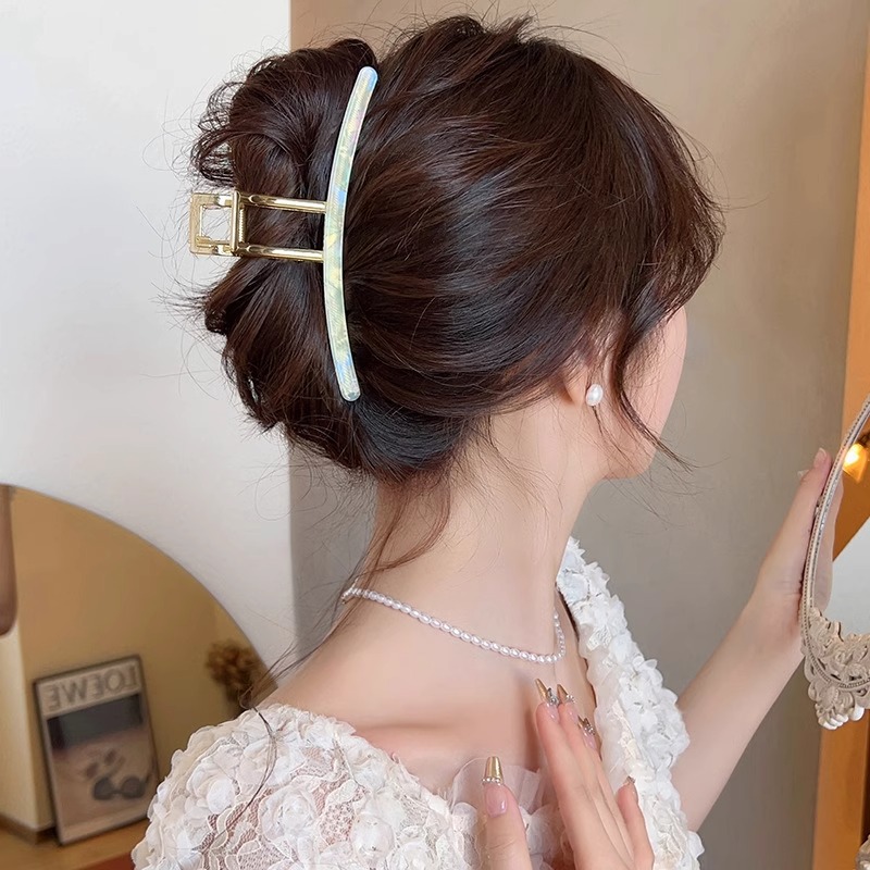 高級感酢酸一字ヘアクリップ女後頭部春夏髪量多盤髪クリップ大サイズサメクリップ頭飾り