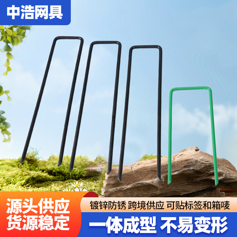 亜鉛メッキ鋼線防草布u型地釘床布釘芝生地膜三次元網太斜先固定園芸釘
