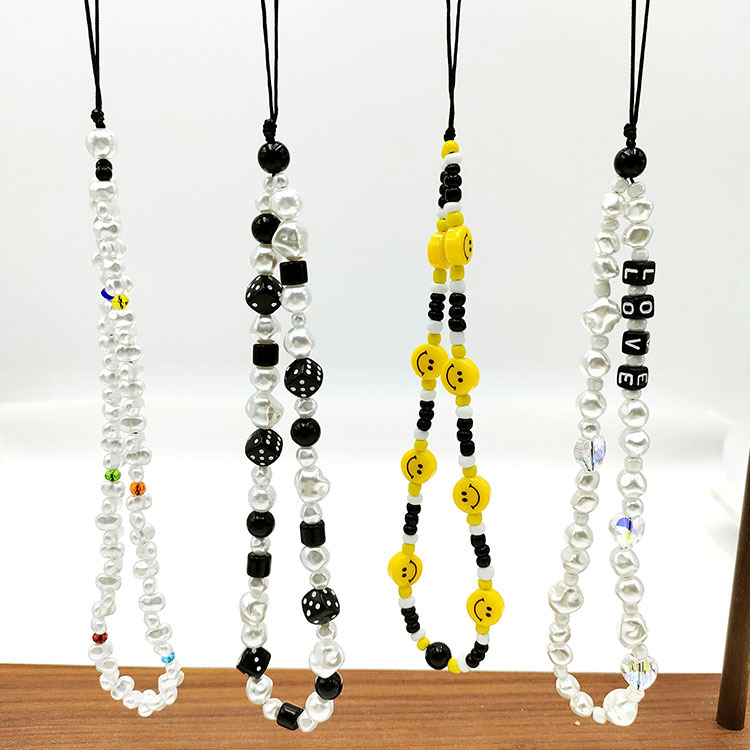 Ins小衆日韓真珠水晶手作り異形ビーズストラップ
