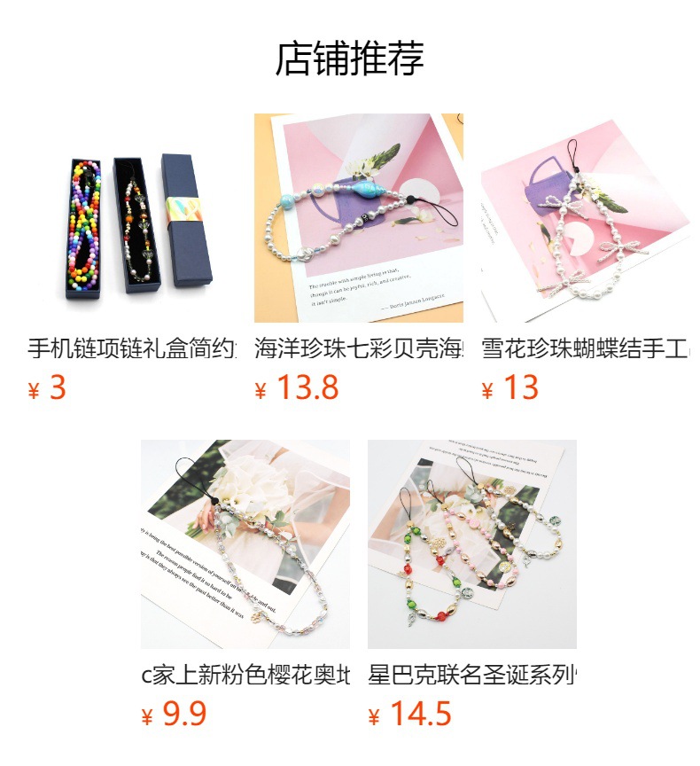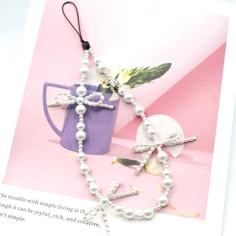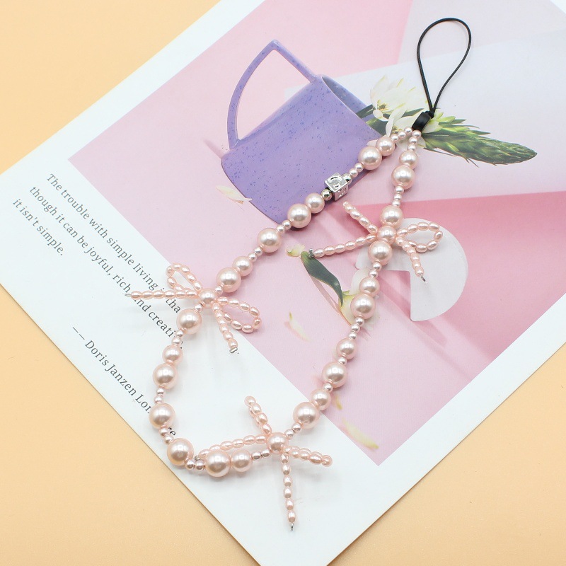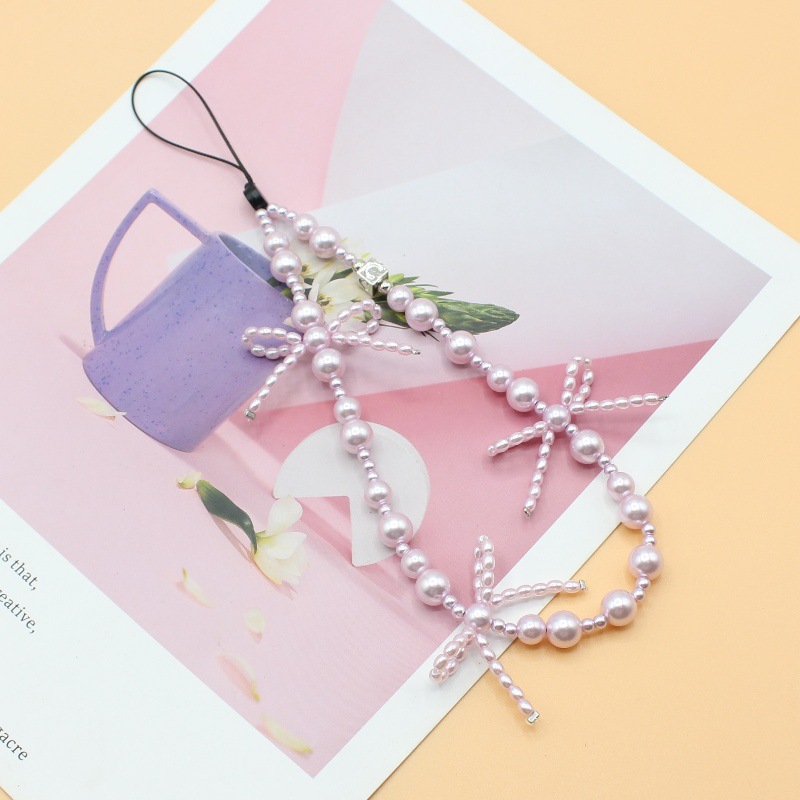 雪花真珠蝶ネクタイ手作りビーズC家スター同型女子かわいい手首チェーン学生携帯電話転倒防止