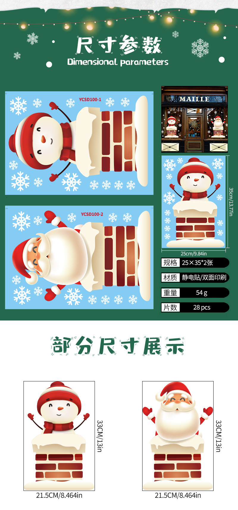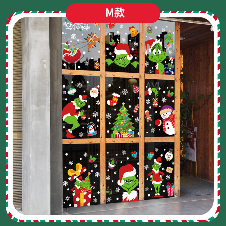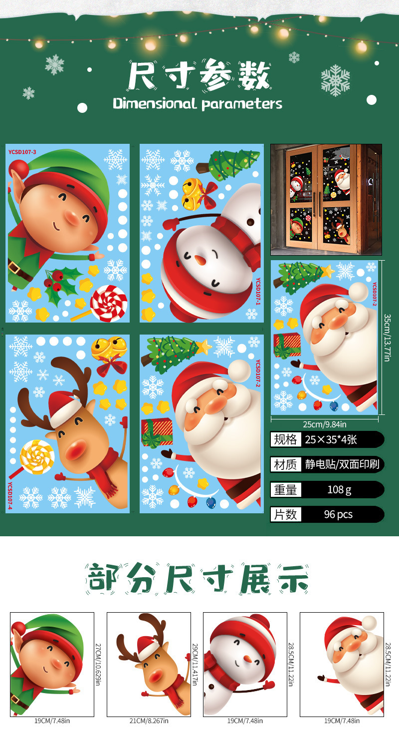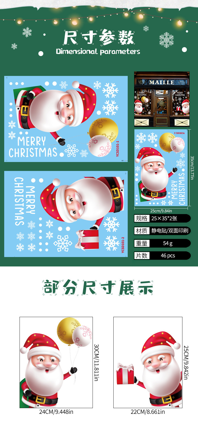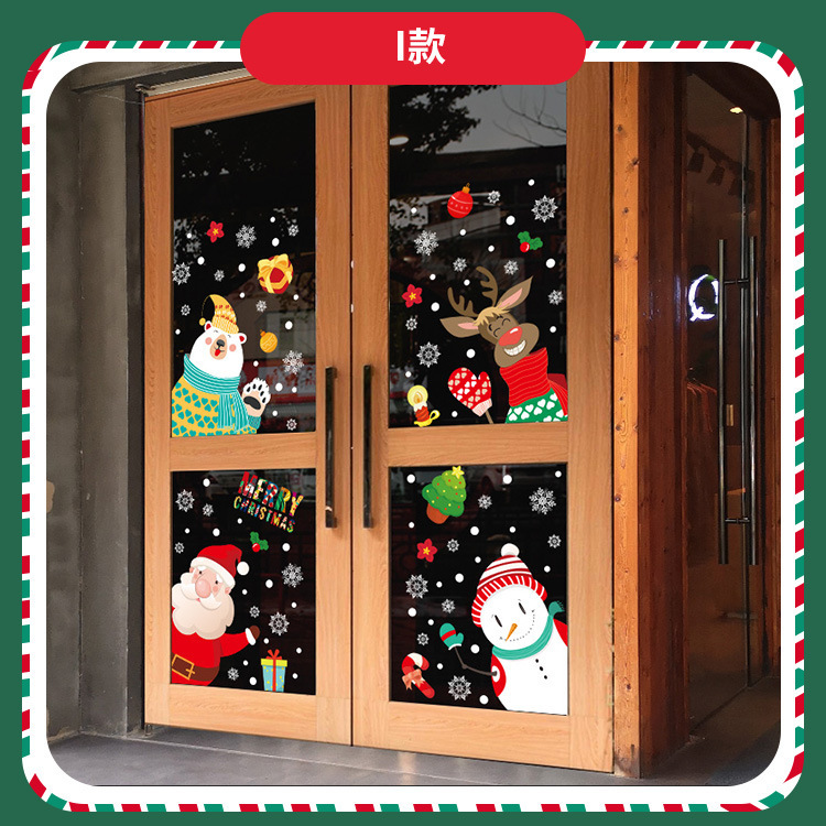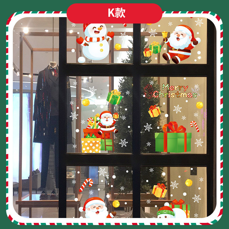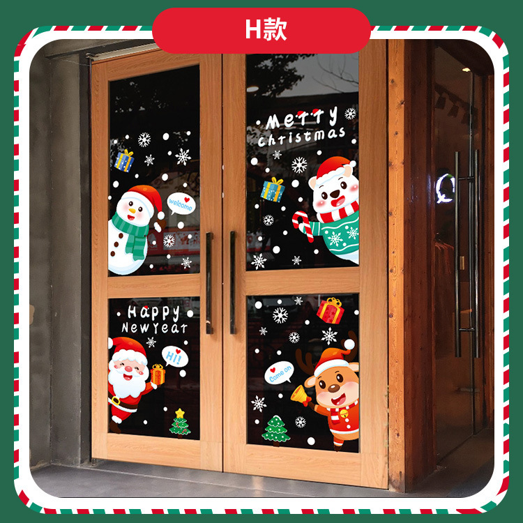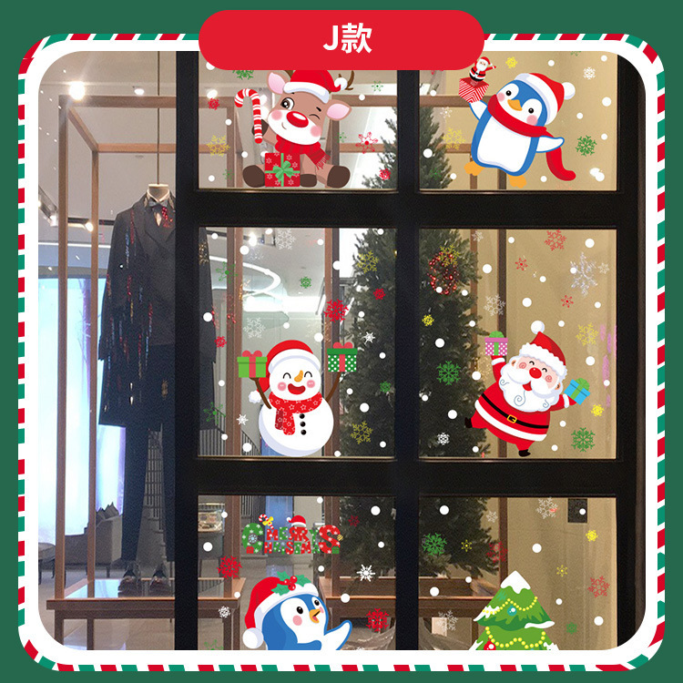アマゾン国境を越えたサンタクロース雪だるまクリスマス雪雪静電シール装飾ガラス扉自己接着窓シール