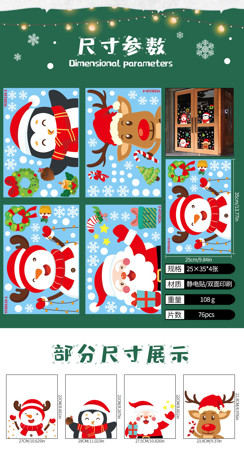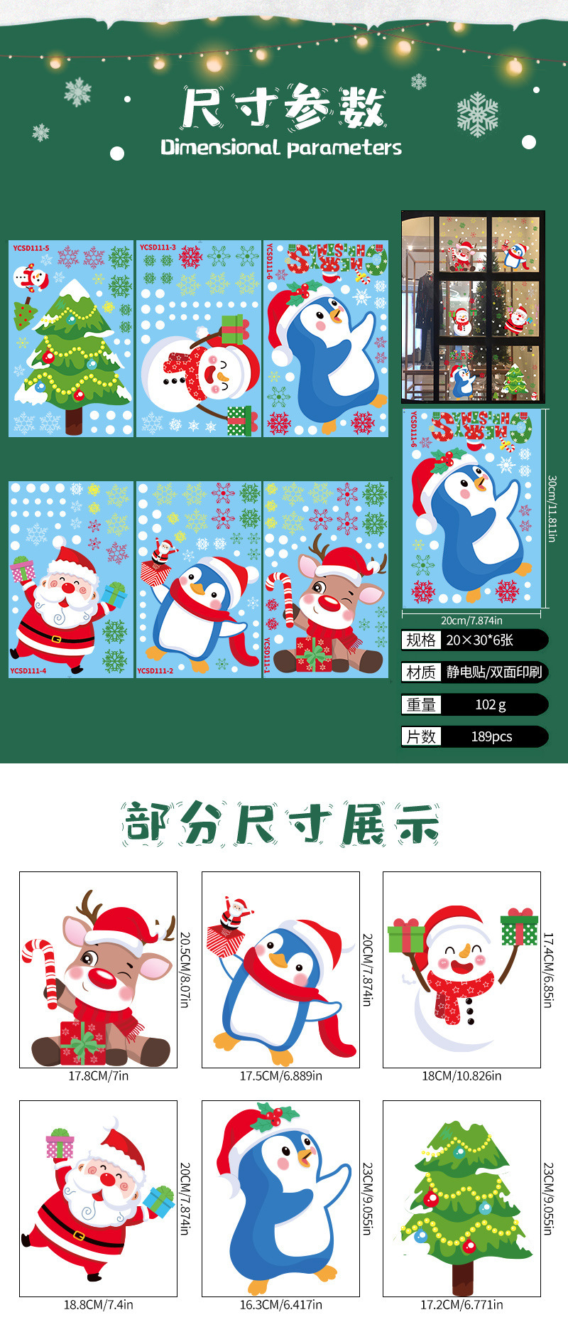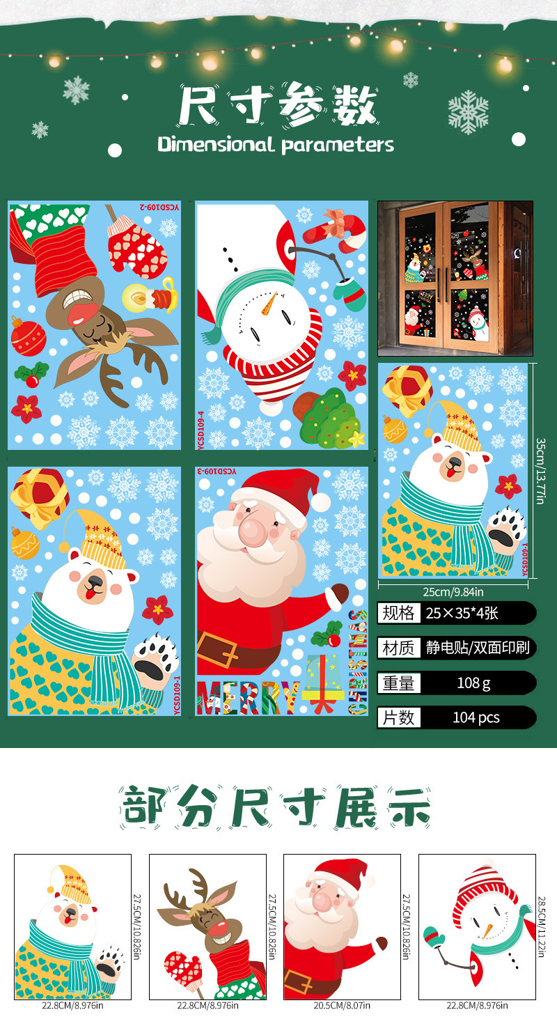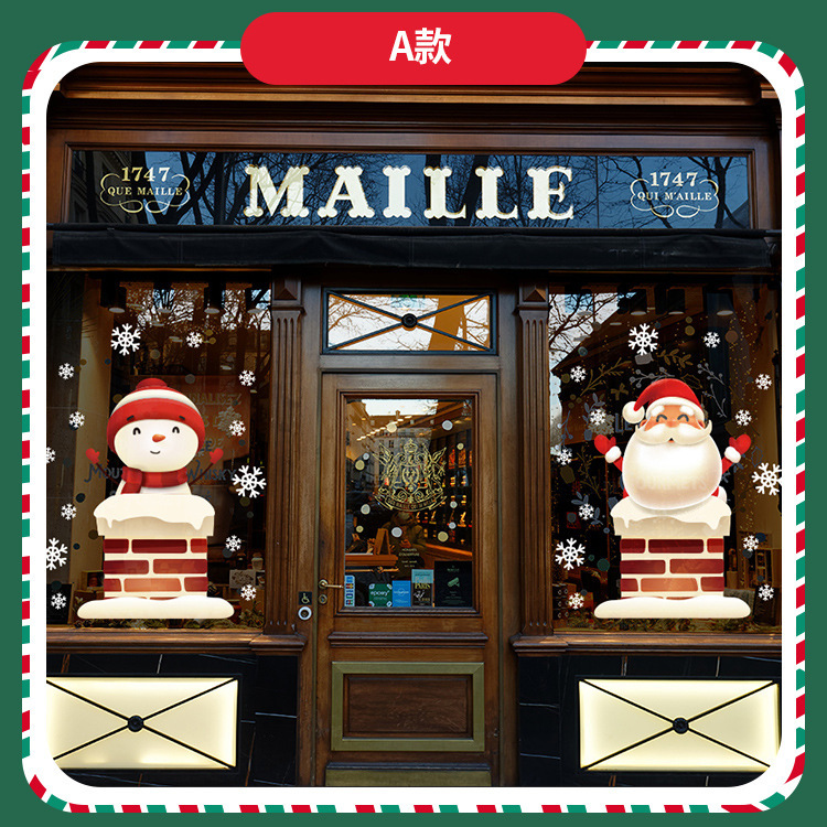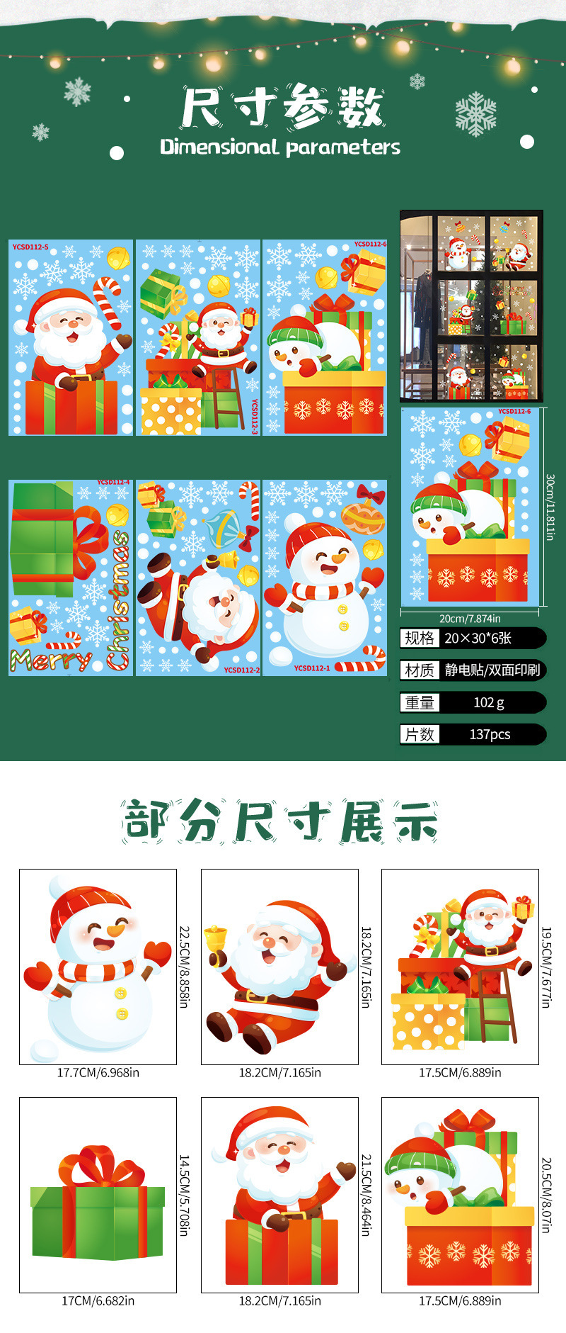 アマゾン国境を越えたサンタクロース雪だるまクリスマス雪雪静電シール装飾ガラス扉自己接着窓シール