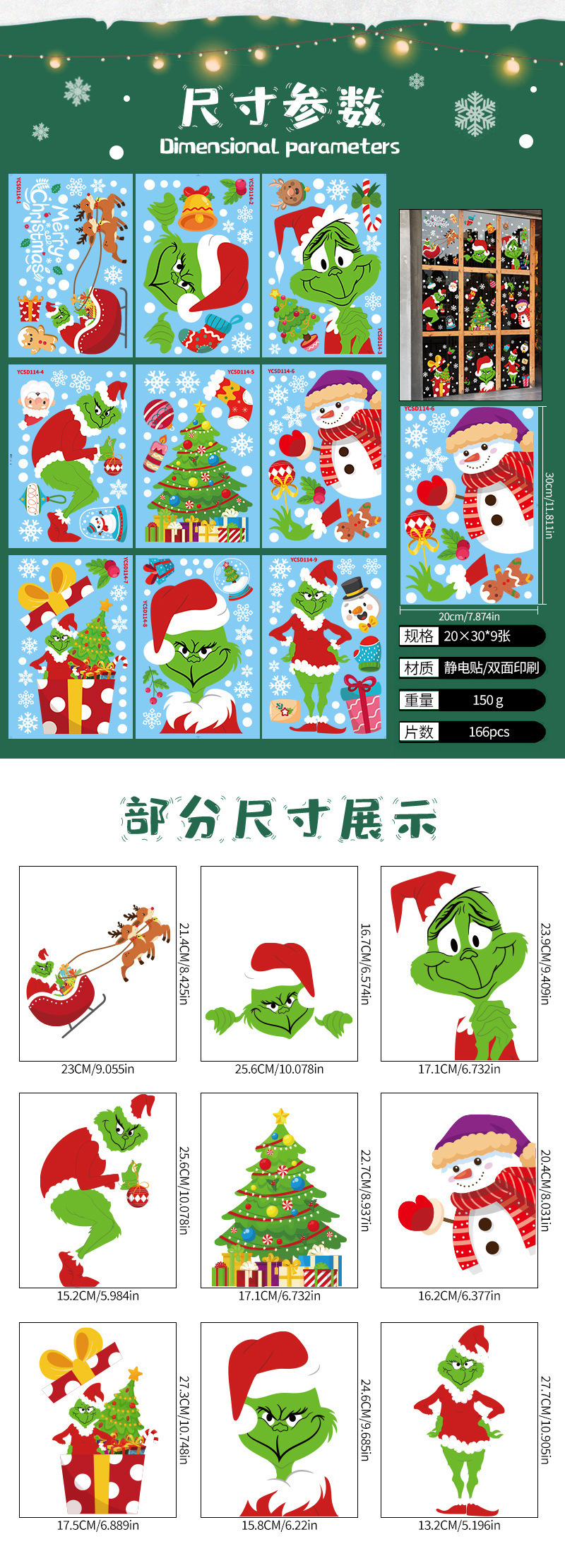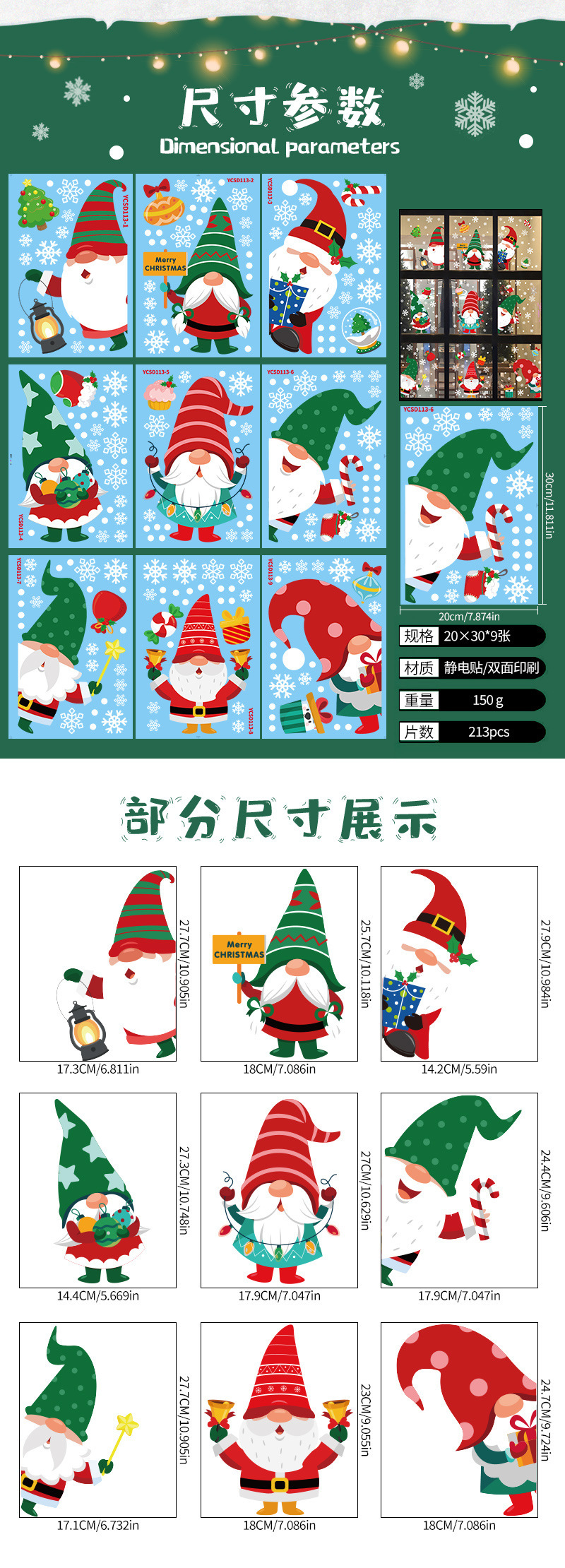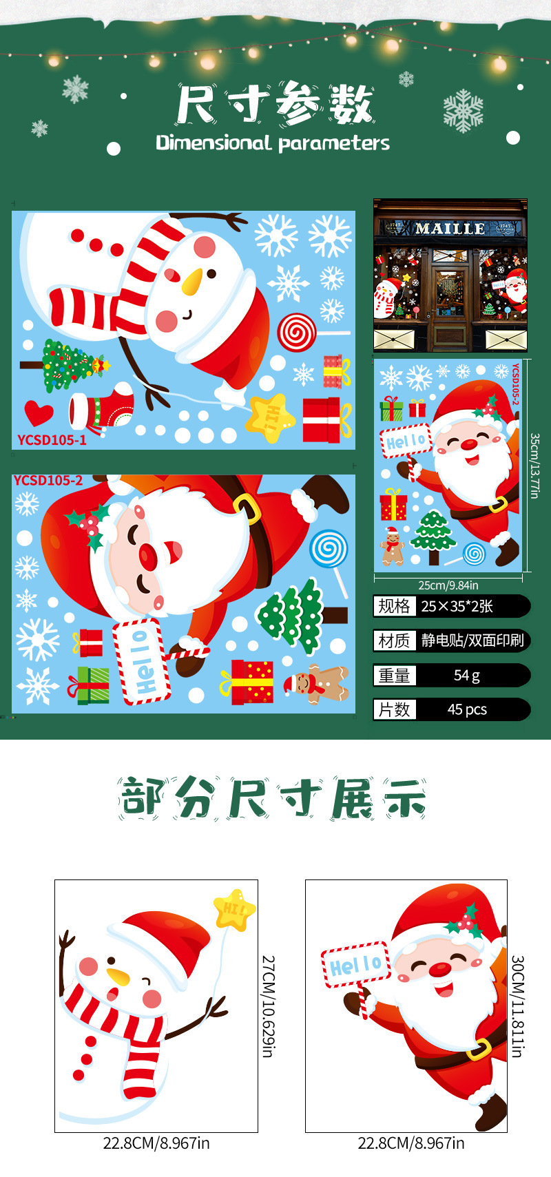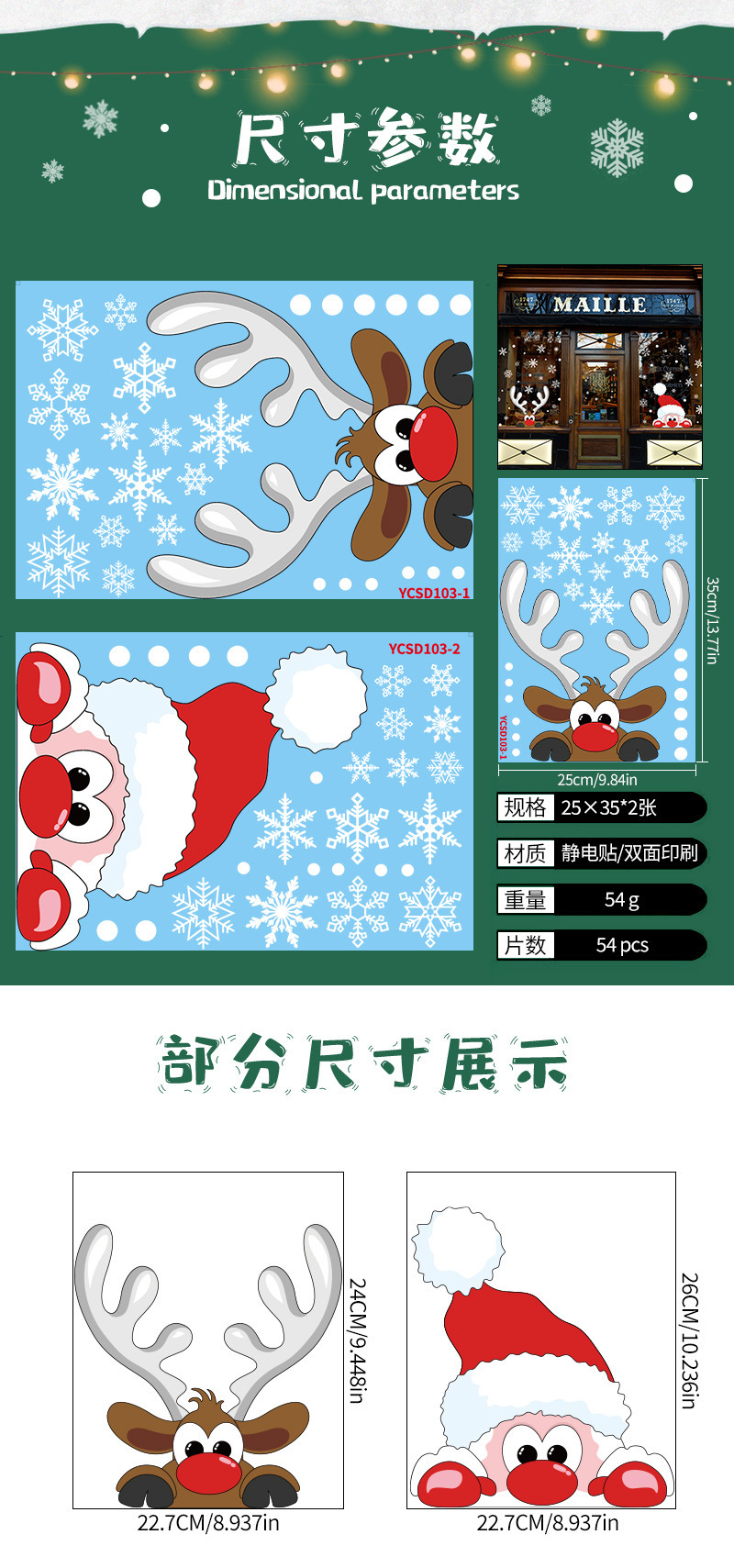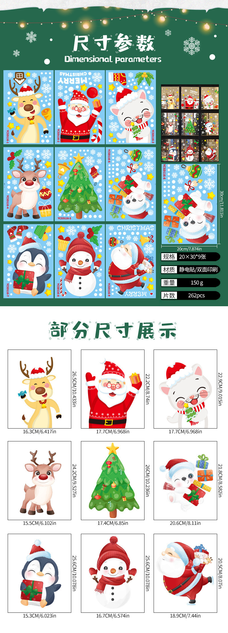 アマゾン国境を越えたサンタクロース雪だるまクリスマス雪雪静電シール装飾ガラス扉自己接着窓シール