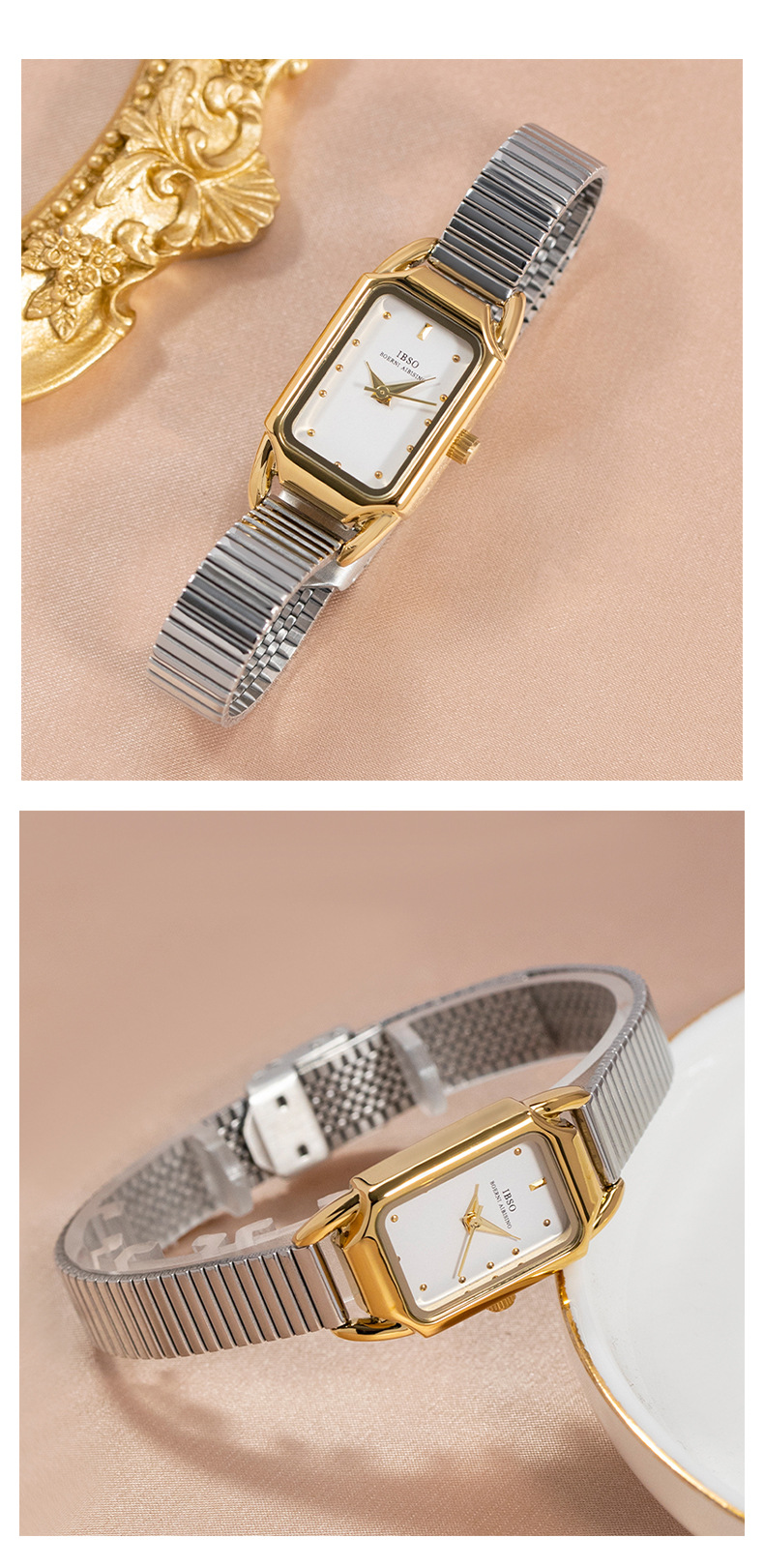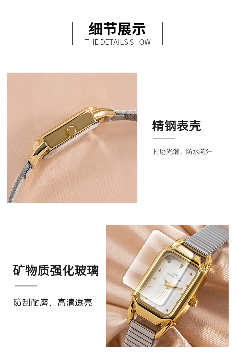 公式の正規品の腕時計の女性の金の2024年の新型のファッションの四角形の輸入の石英の鋼帯の防水の小さいサツマイモの爆発金