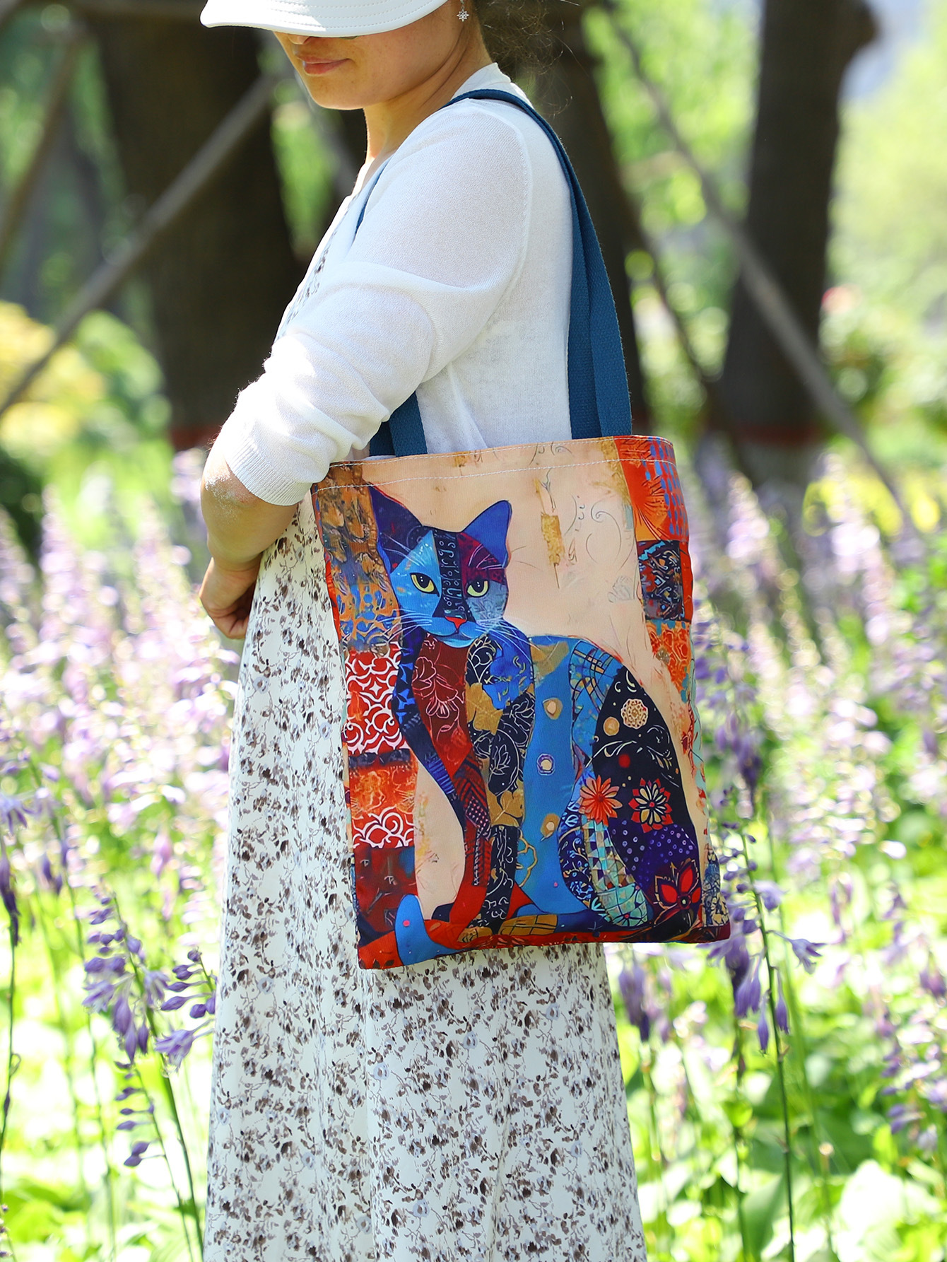 2024夏クロスボーダー新型キャンバスバッグファッション表裏プリントフクロウエジプト猫柄ショルダーバッグショッピングバッグ