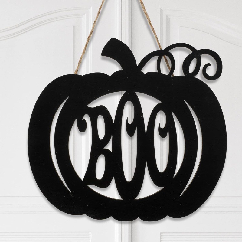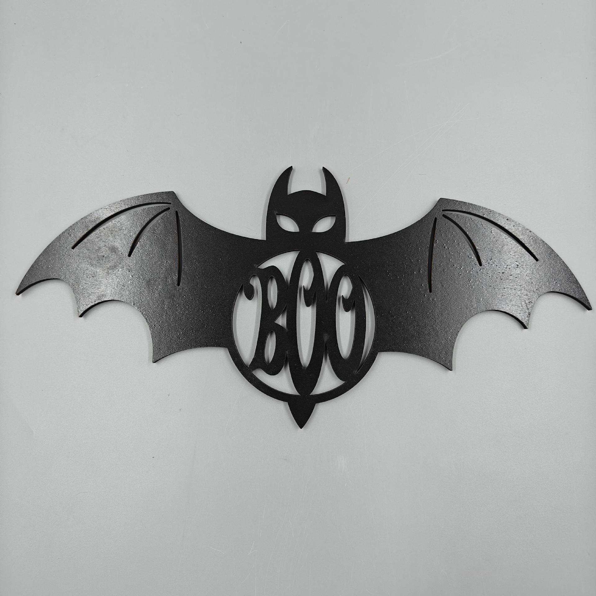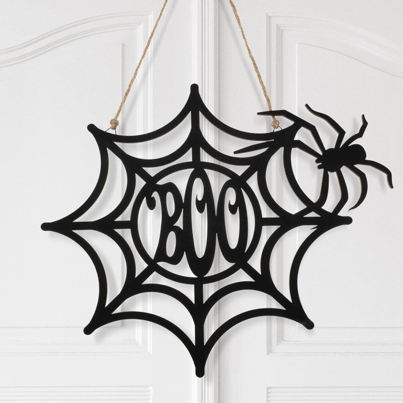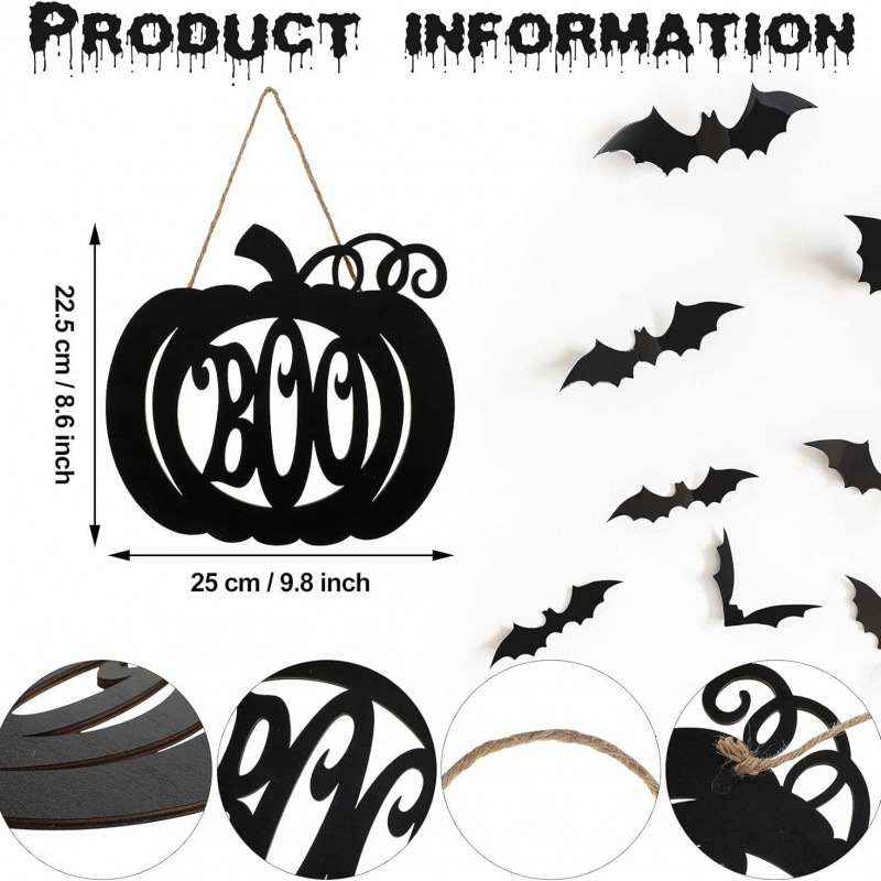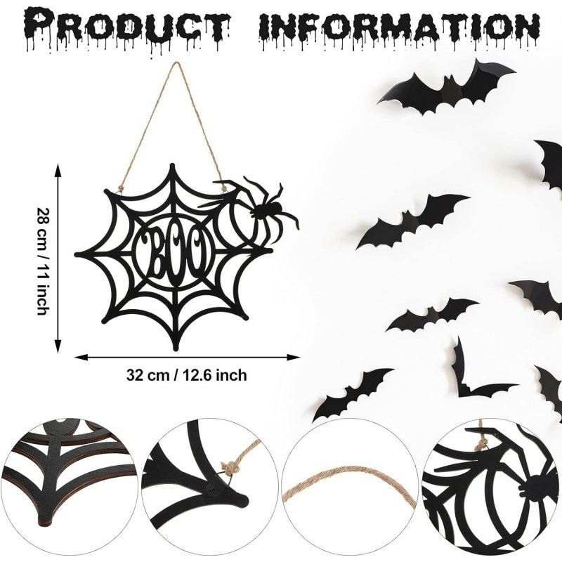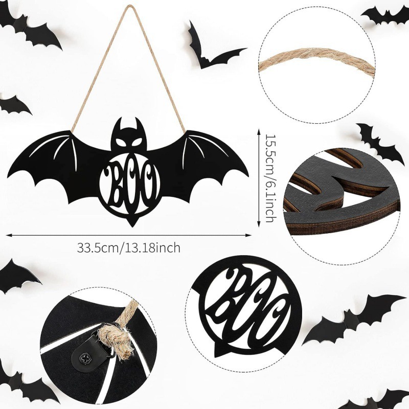 国境を越えた木製コウモリのクモが壁にぶら下がっているのは室内ハロウィーンのドアフックの黒いBooドアが装飾を掛けている