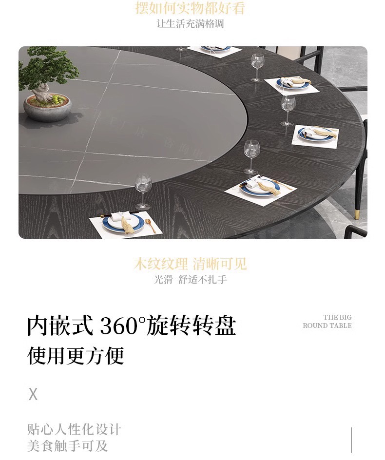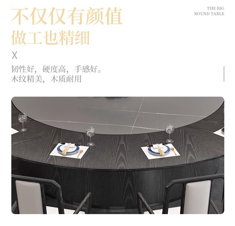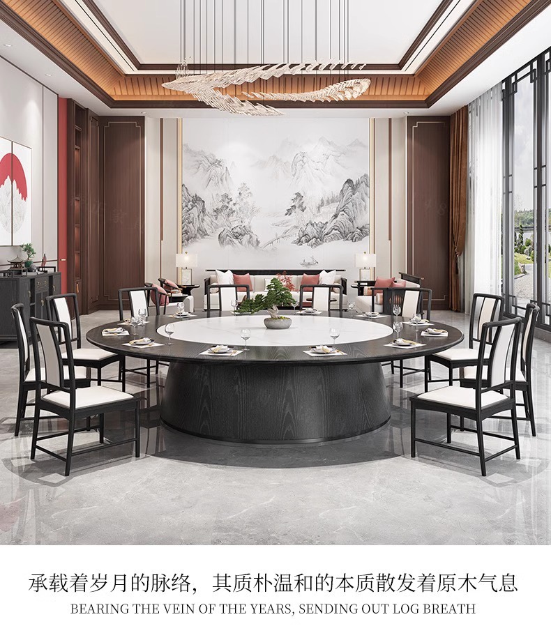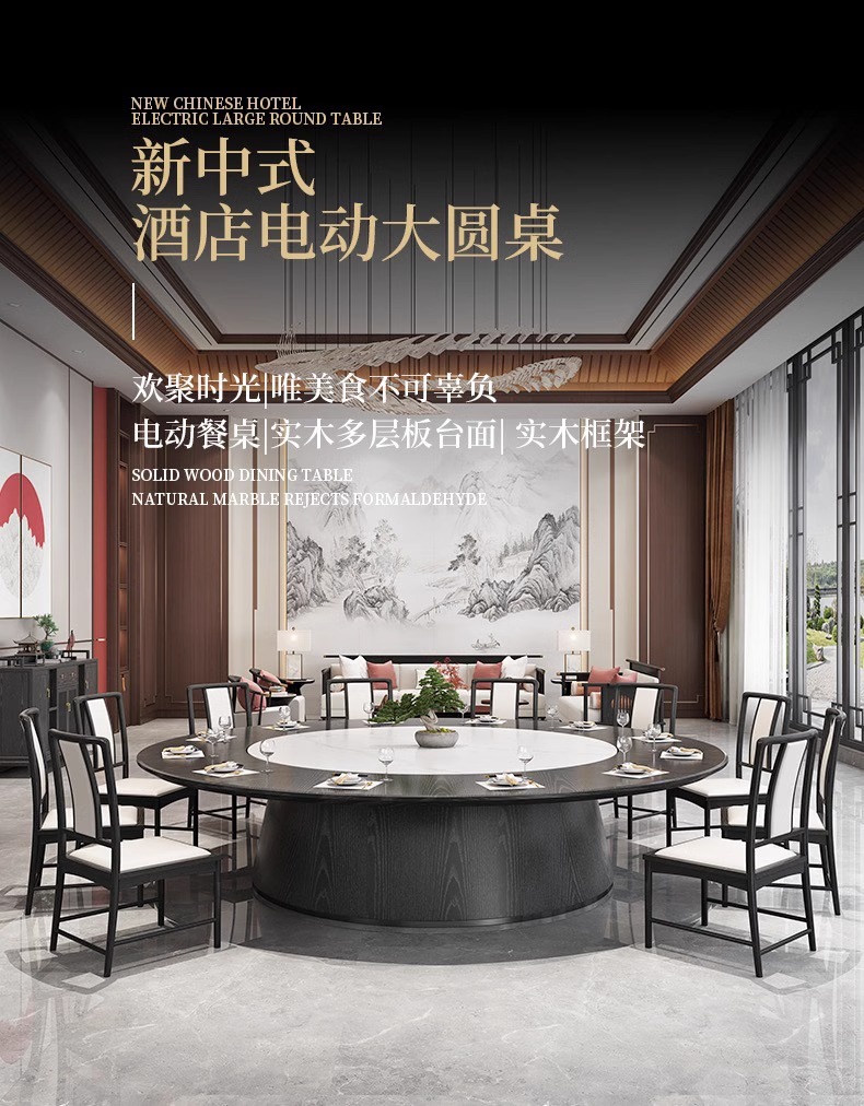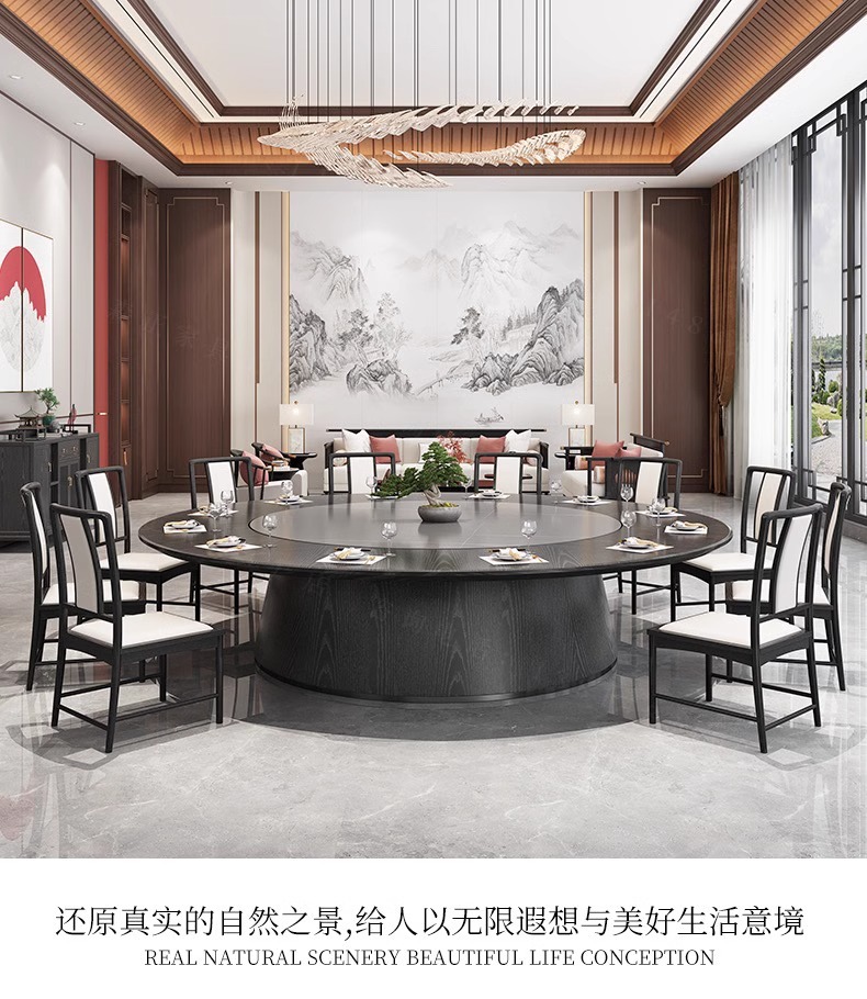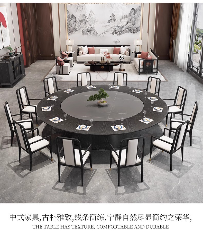 新中国式ホテルテーブル大円卓トランク会16人実木テーブル岩板平行ターンテーブル電動テーブル