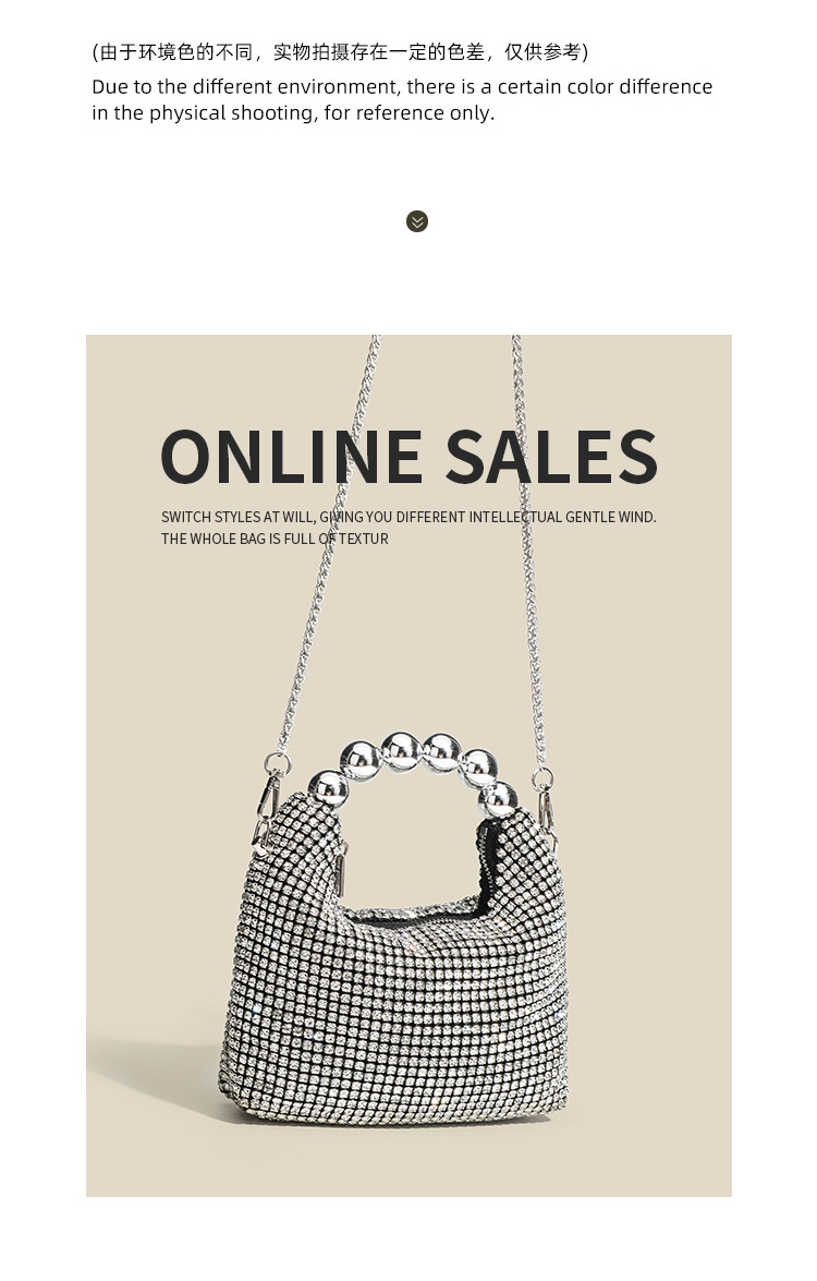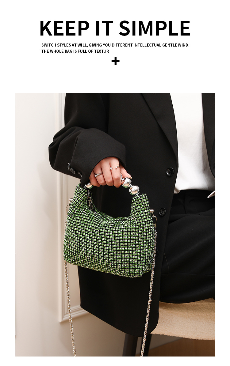 クロスボーダーホット販売フルダイヤモンドバッグ女性のダイヤモンドがちりばめられたディナーバッグバケットバッグラインストーンチェーンバッグ光沢のある手持ちクロスボディバッグ