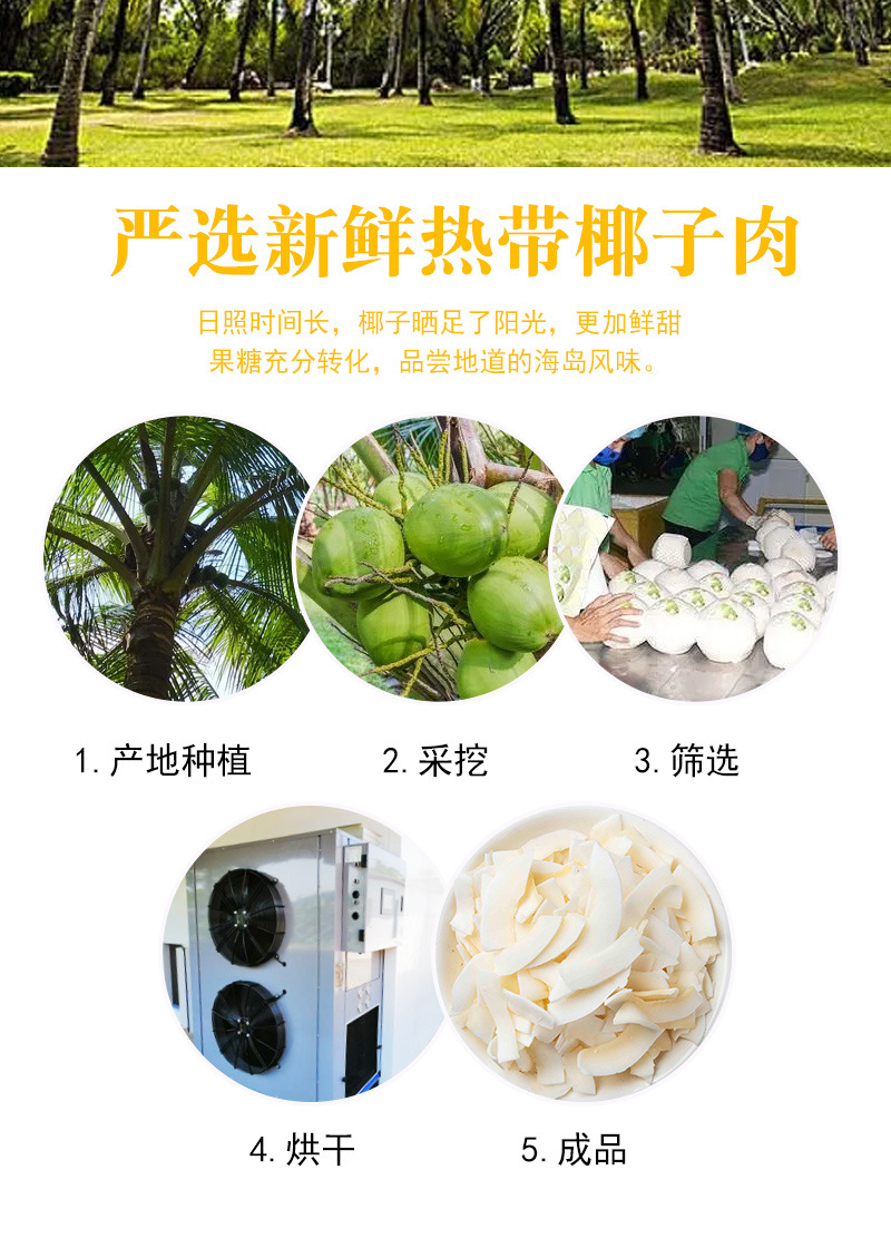 海南产椰子片脆片500即食烤椰子肉干脆块薄脆椰果干椰子角
